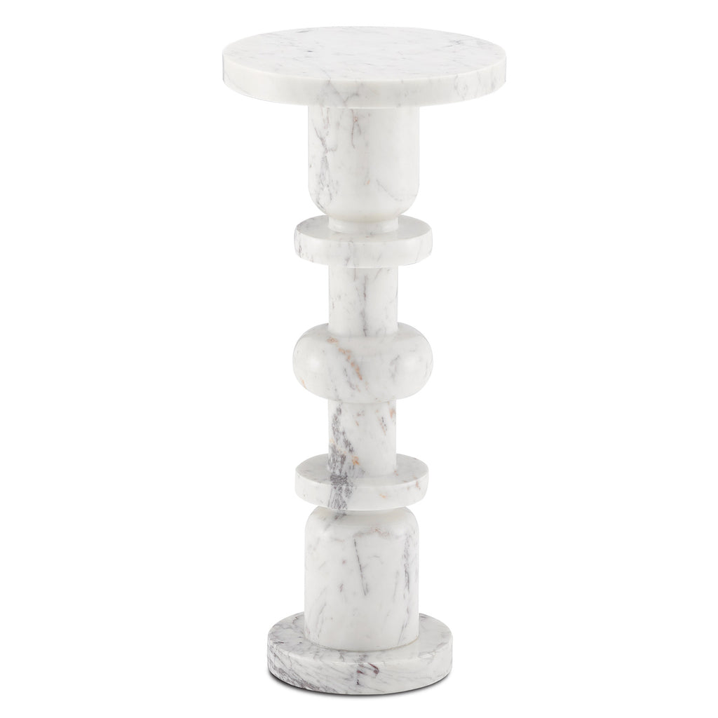 The Currey & Company Sasha Drinks Table seems to be saying "it’s your move," as the chess-piece-like profile creates a whimsical addition to any interior. Made of white or black marble, the pale veining that runs along the table’s surface makes each of these hand-carved pieces unique.