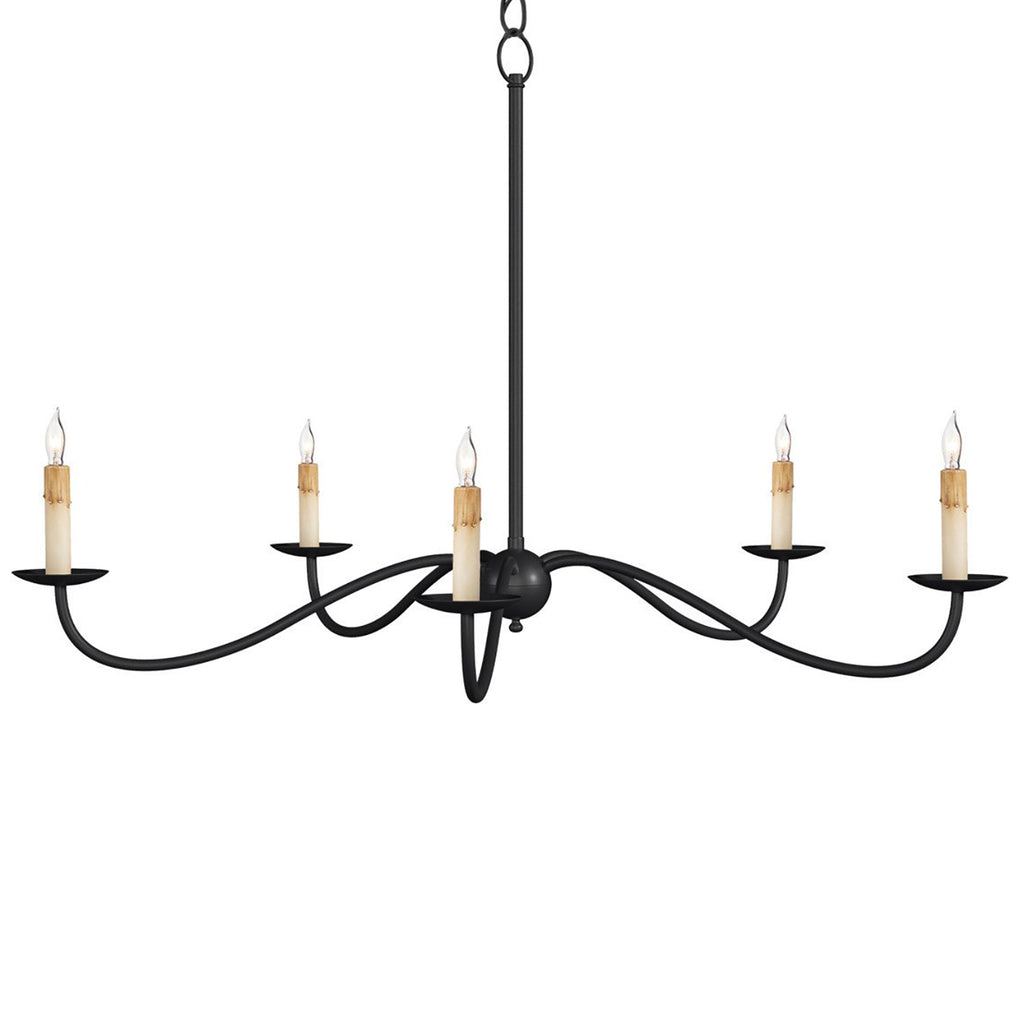 The Currey & Co Saxon Small Black Chandelier is one of our most graceful chandeliers with arms that fluidly stretch outward. Its shape and the Zanzibar black finish are nods to a bygone era, but its arcing slender lines make its profile modern.
