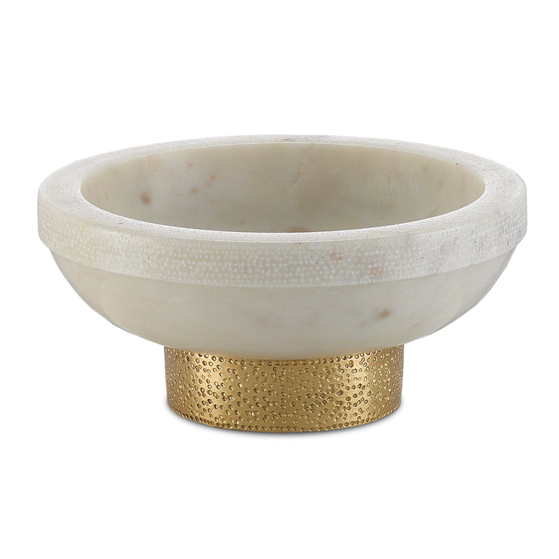 Any number of baubles will look all the more enticing when placed within the Currey & Company Valor Bowl. Made of white or black marble in a brass finish, the golden tones of the base bring this simple design more heft. Pair small and large bowls together for double the charm.