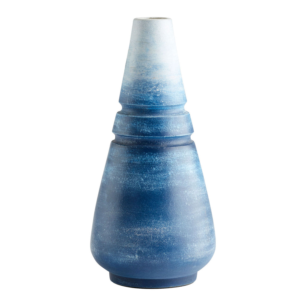 The vibrant blue rubbed ombre finish on the Cyan Design Amarna collection of handmade earthenware vases accentuates its signature cone shape. Etched horizontal grooves are carved mid-height, adding a layer of texture to the smooth wash-like finish. Display together or individually in any poolside covered patio design, kitchen, entryway or washroom. Available in two sizes.