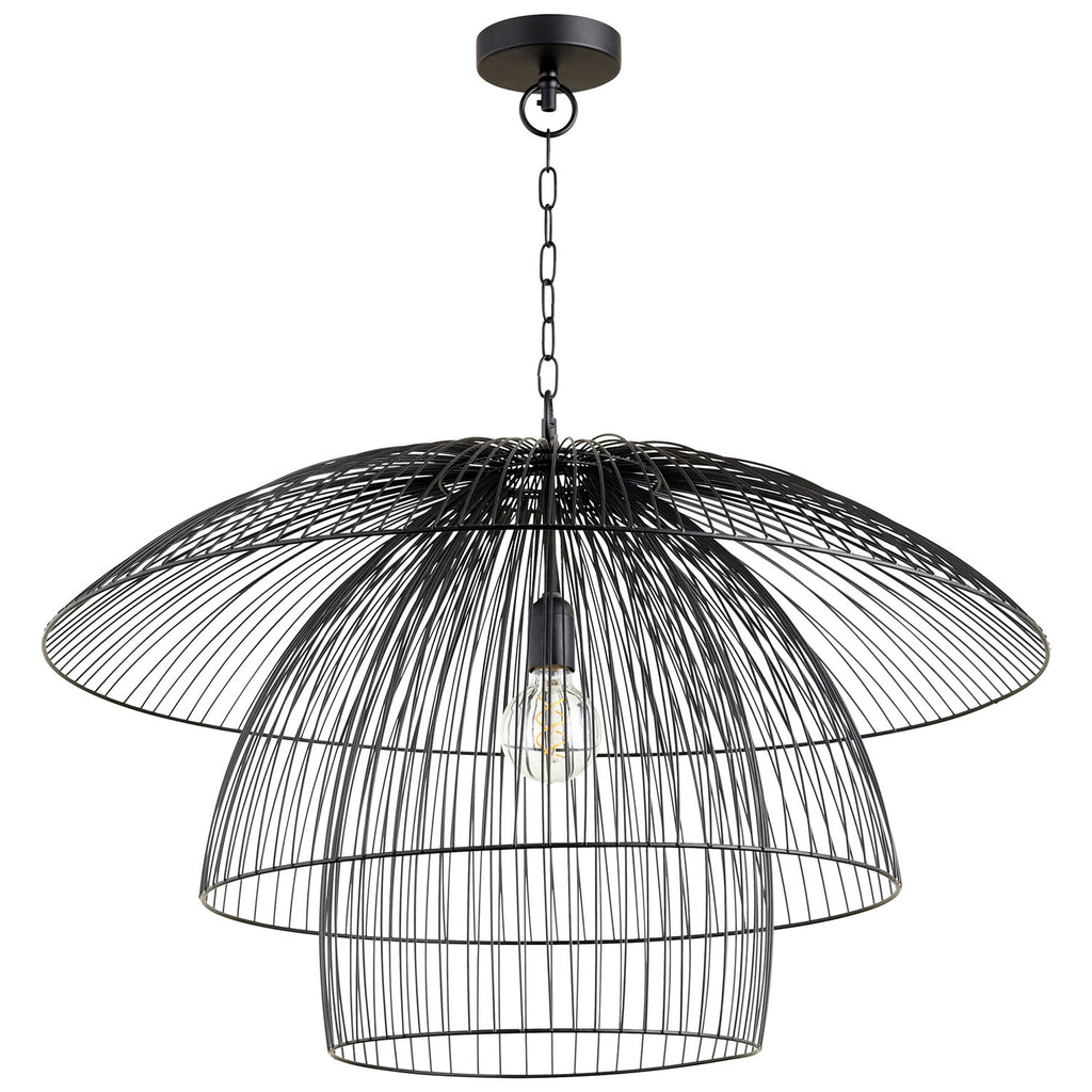 Illuminate a home or office with the eclectic silhouettes of Cyan Design pendants. Perfect for suspending over a kitchen or dining room table for a functional yet warm and welcoming ambience. Illuminate your ensemble in eclectic style with the one-light Canopy pendant. The matte-black Cyan Design Canopy pendant is crafted from iron, featuring a three-tier open-frame shade that liberally diffuses light emitted from a single 60W medium based bulb. The design allows for the emission of an abundance of ambient light in every direction while offering a whimsical look fit for any modern, transitional, or boho-inspired space. Ten feet of adjustable cord gives some variety in height, allowing you to tailor to your space's needs. Stack three over an island for a warm glow throughout your kitchen or line your hallway with a grouping for the perfect amount of light to guide your houseguests.