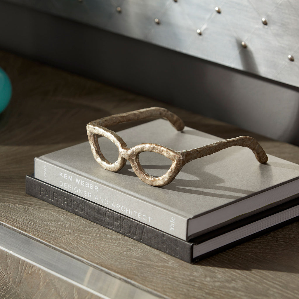 Lend an eclectic feel to your home or office with Cyan Design decor. Distinctive and versatile, this unique piece can be the inspiration for a room, or the finishing touch that perfects it. The Cyan Design Cat Eyes sculpture features a pair of glasses crafted in a metal sculpture add character and charm to a bookcase or desktop. In an old world or antique silver finish over iron construction, the sculpture perfectly emulates a pair of reading glasses.