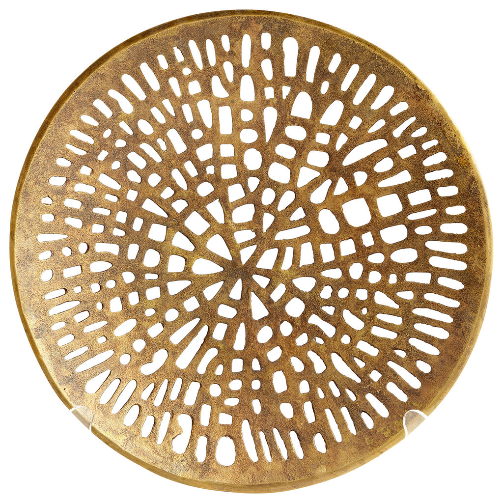 Filled with knickknacks, this small antique brass colored bowl will look stunning on a side table or a bookshelf. Visually appealing, this intriguingly modern bowl is a showstopper.