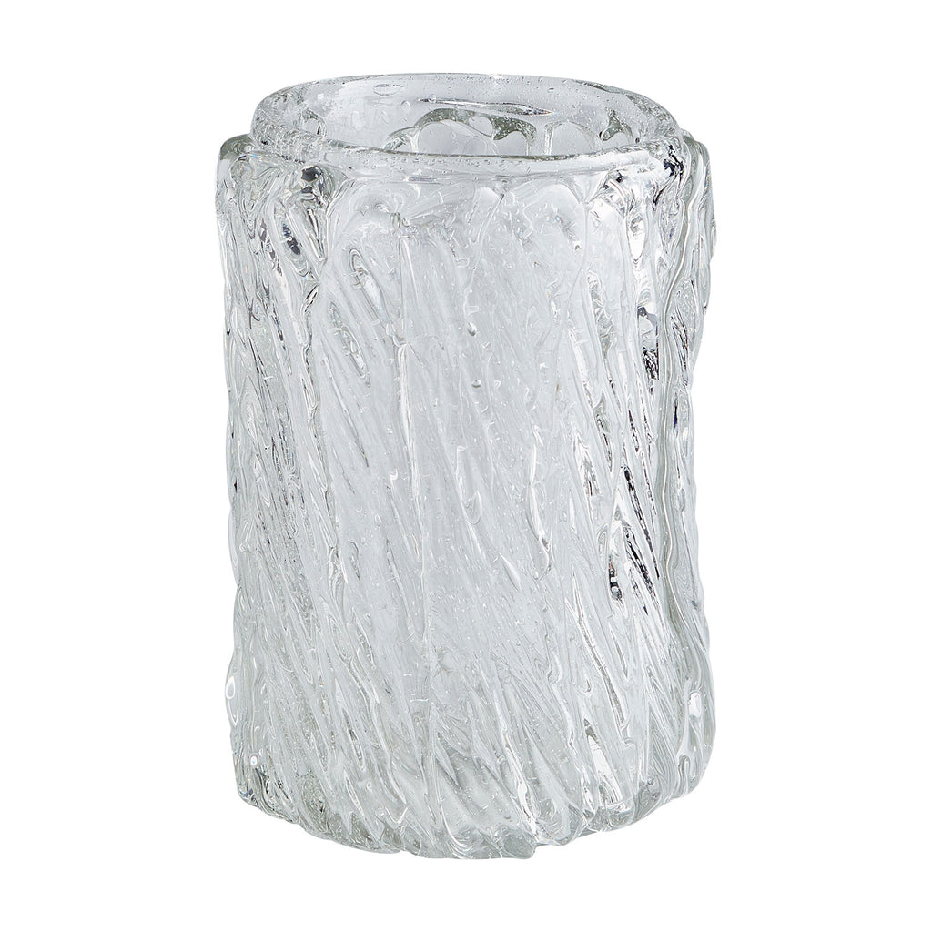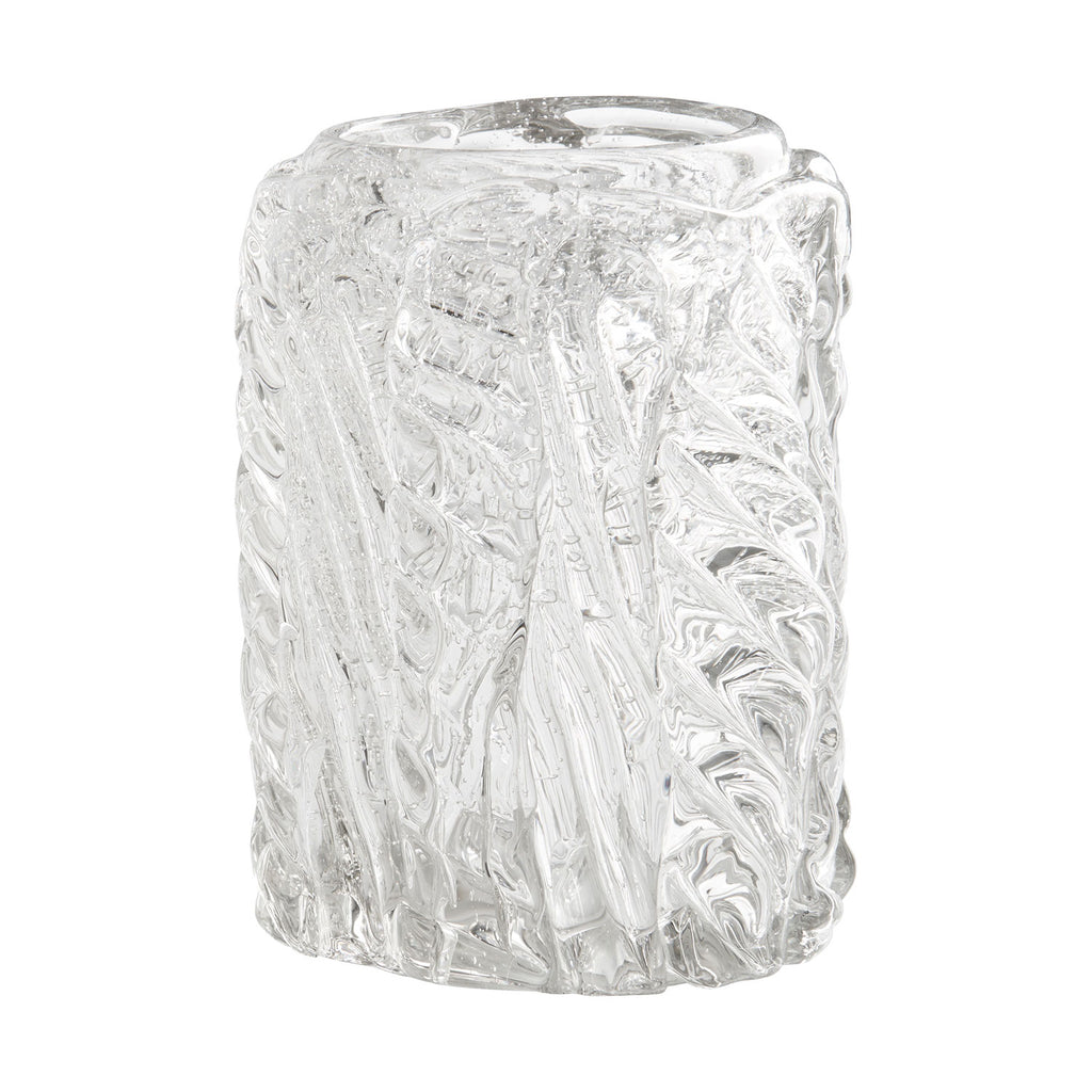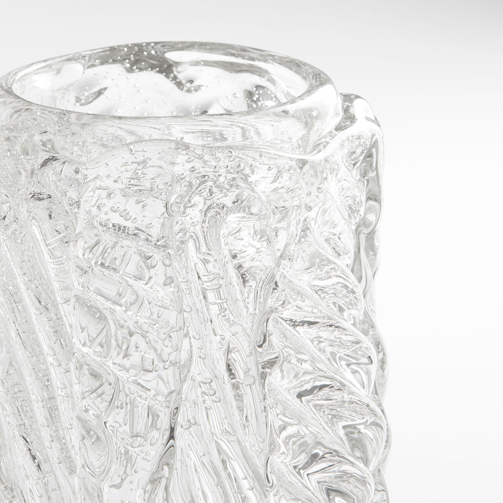 Hand-formed and extraordinarily thick, the Cyan Design Clearly Thorough vase's dominant distinction is texture. Peaks and valleys in the topography of the finish trigger a striking composition of light refraction. Abstract expression and organized chaos shape the spirit of this inventive piece. Fill with your favorite seasonal floral arrangement atop your kitchen counter or display solo on your entryway table for a look that's out of this world. Add a candle for a hurricane-like effect. Use as a centerpiece in a dining room or start a conversation by placing atop a living area coffee table.