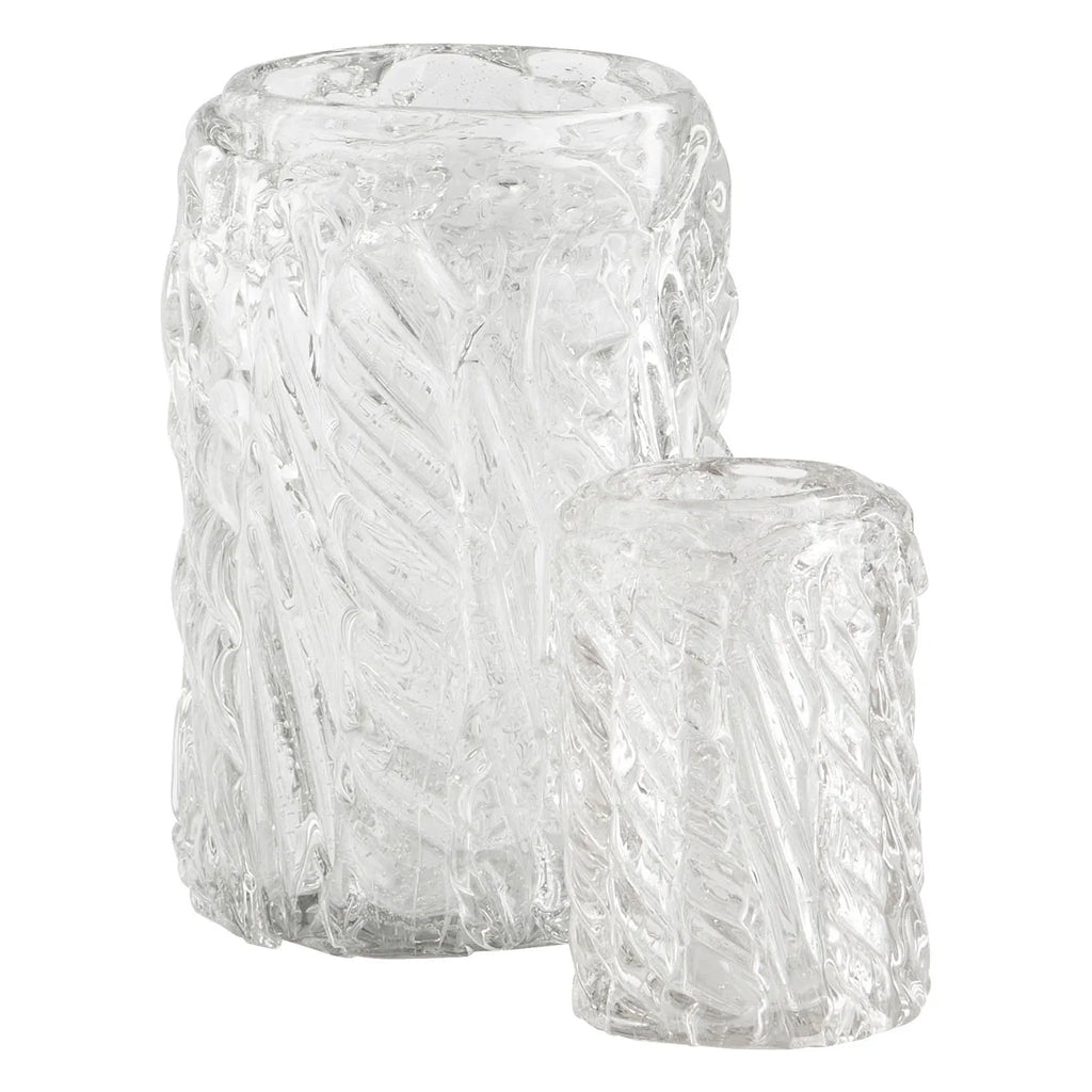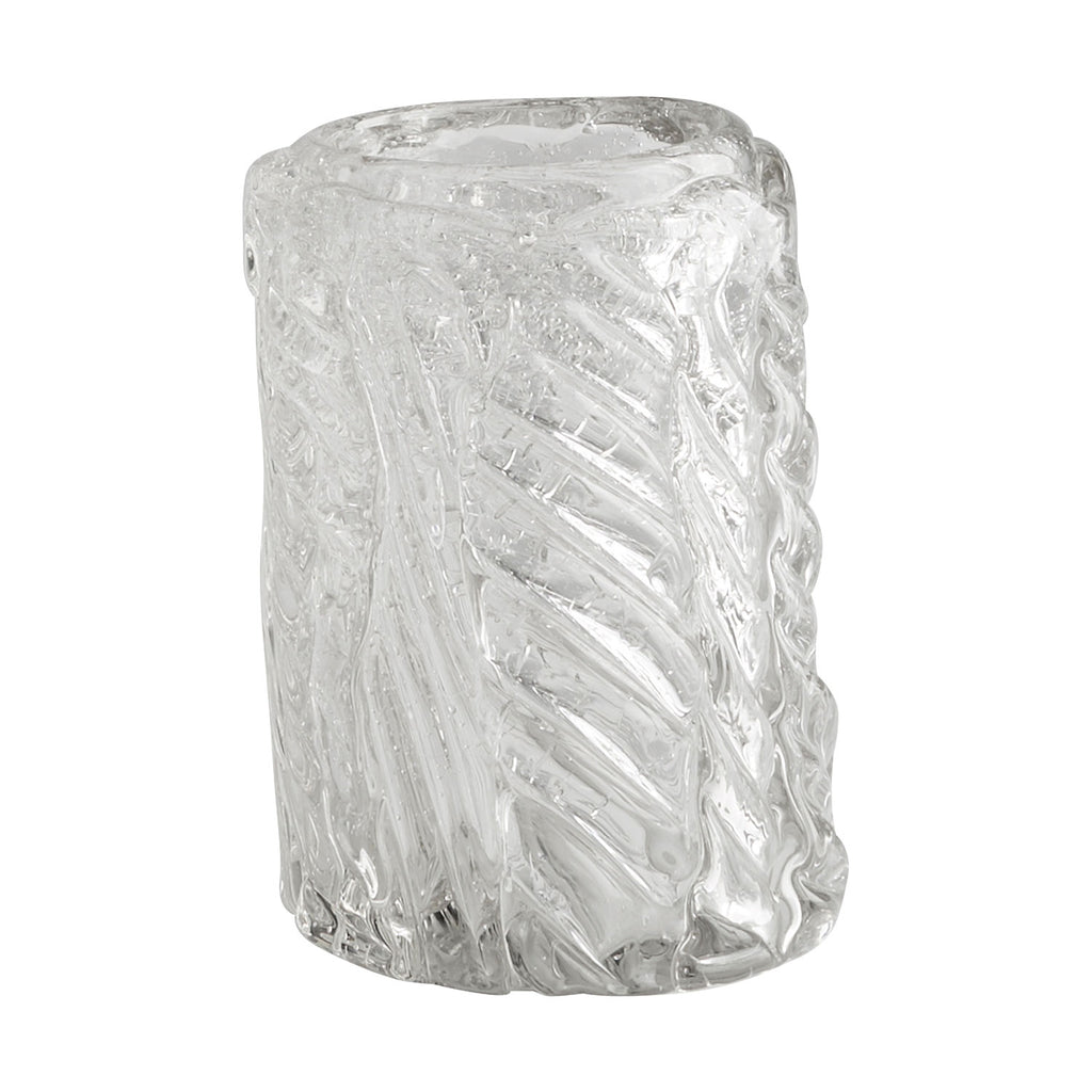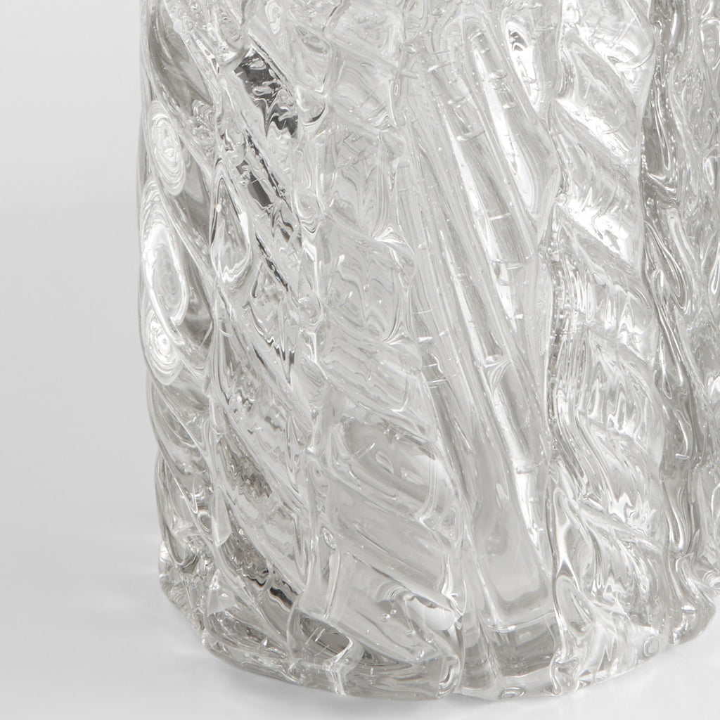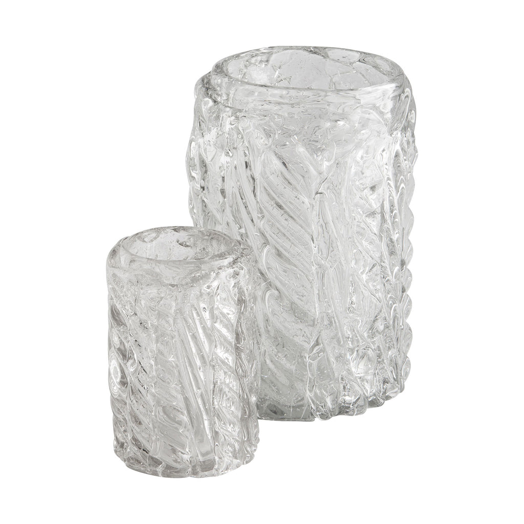 Hand-formed and extraordinarily thick, the Cyan Design Clearly Thorough vase's dominant distinction is texture. Peaks and valleys in the topography of the finish trigger a striking composition of light refraction. Abstract expression and organized chaos shape the spirit of this inventive piece. Fill with your favorite seasonal floral arrangement atop your kitchen counter or display solo on your entryway table for a look that's out of this world. Add a candle for a hurricane-like effect. Use as a centerpiece in a dining room or start a conversation by placing atop a living area coffee table.
