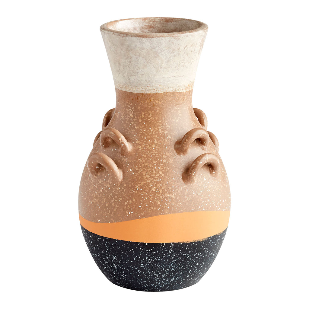 Vases from Cyan Design compliment a bouquet or stand alone on display with distinctive style. These decorative accents add an eclectic feel to contemporary spaces. The unique Cyan Design Desert Eve vase design is an ode to the sandy desserts of Southeast California. Its grainy four-tone finish combined with its multi-handle aesthetic, and elegantly elongated neck, makes this vase a stylish utilitarian and decorative item for any indoor or outdoor space.