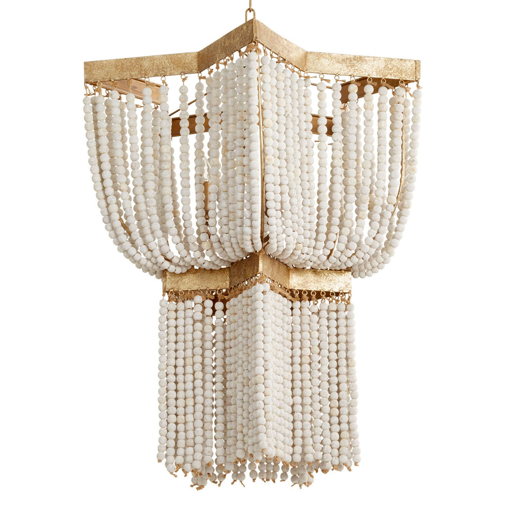 Illuminate a home or office with the eclectic silhouettes of Cyan Design pendants. Perfect for suspending over a kitchen or dining room table for a functional yet warm and welcoming ambience. Vintage charm makes its way to a tasteful and stylish light fixture. With a design-forward silhouette, strands of wood beads in a creamy finish add a fun detail enhancement to a beautifully designed base. This three-light tinted gold leaf iron and wood pendant delivers an extra special artistic feel.