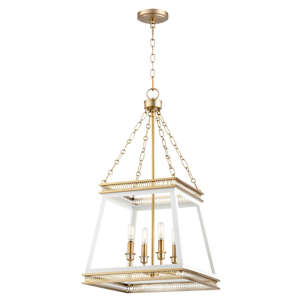 Illuminate a home or office with the eclectic silhouettes of Cyan Design pendants. Perfect for suspending over a kitchen or dining room table for a functional yet warm and welcoming ambience. The charming four-light Cyan Design Gerard pendant draws inspiration from neo-nostalgic French country design. The two-tone, aged brass/blue fixture sports an open frame with four candelabra sockets nestled neatly within. The crown of the enclosed structure boasts ornate molding that attaches to the matching chain suspension system. This luminary is the perfect fixture to showcase in multiples over your traditional kitchen island, to line down your modern farmhouse hallway, or to hang over your cute and cozy reading nook. With ample illumination cast from the light source, the Gerard pendant delivers in its function as much as it does its beautiful form.