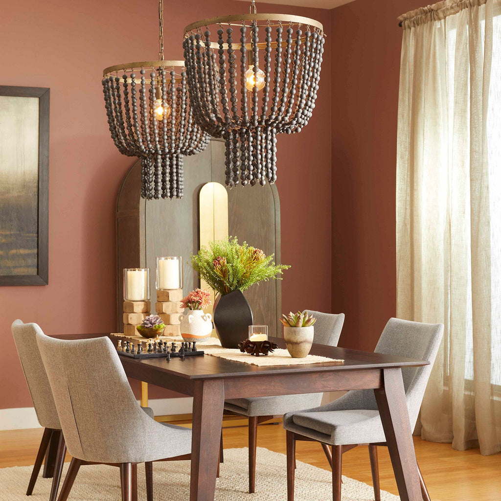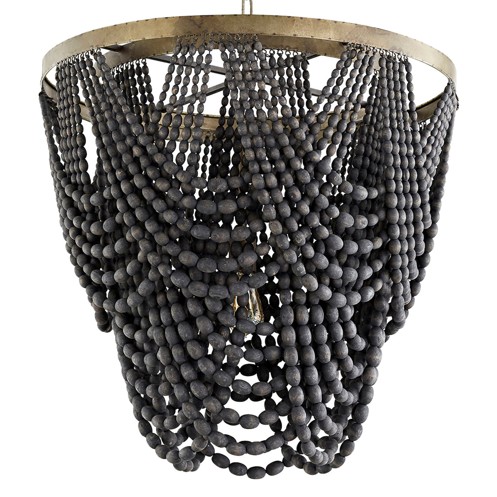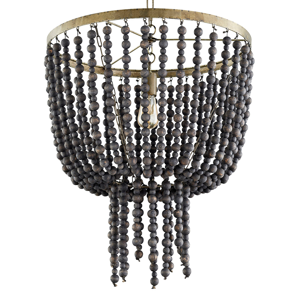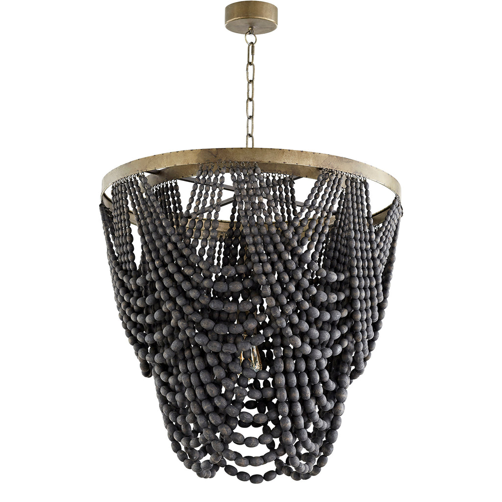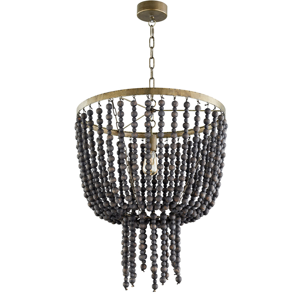 The Hammock Pendant possesses a single gilded frame with dark monochromatic beads that make up its impermanent body. The Hammock Pendant is perfect for any formal space.