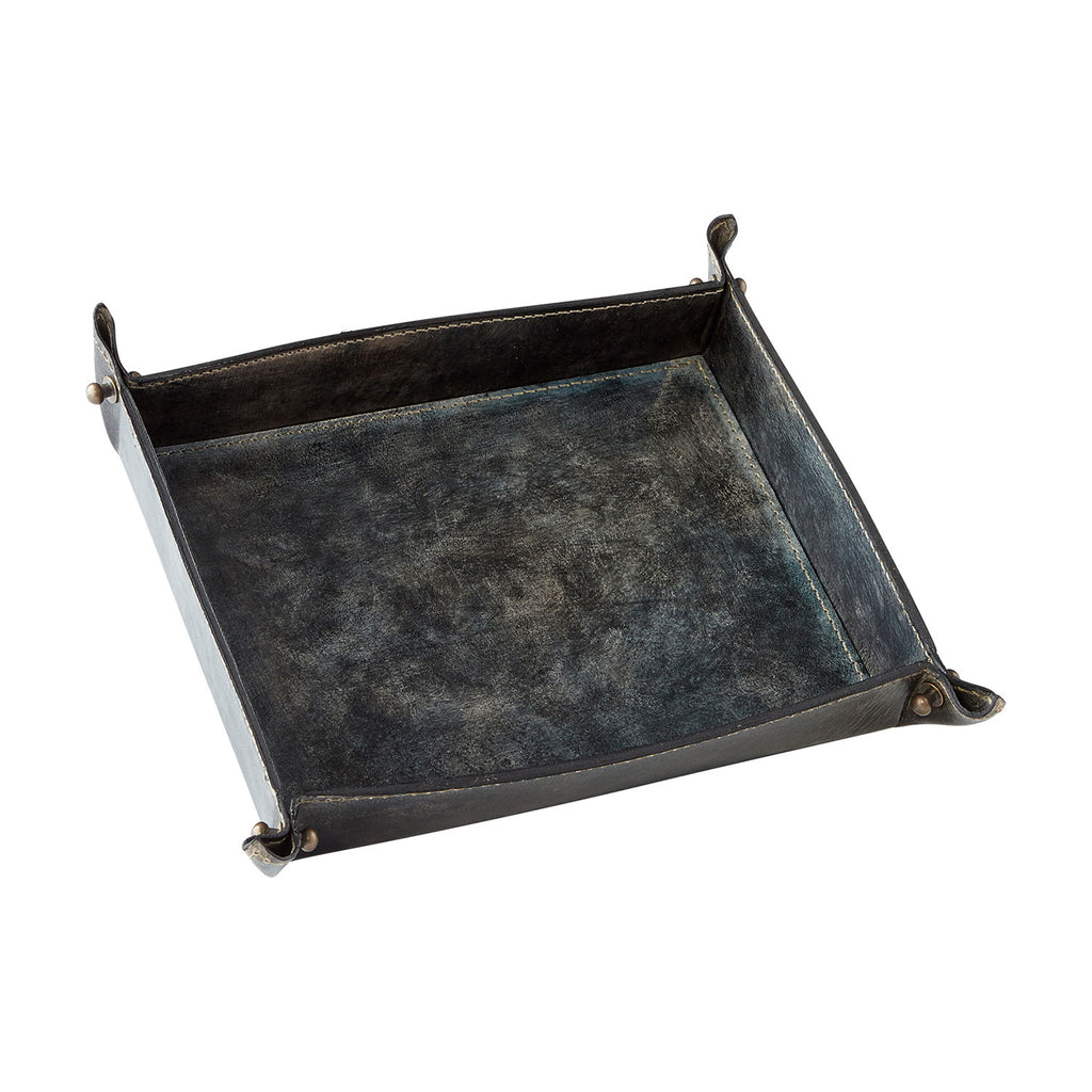 Give tabletops and shelves an eclectic boost with a decorative tray from Cyan Design. This unique storage tray décor offers versatility and function while meshing with your distinctive style. Luxurious deep gray in a traditional leather material makes the Cyan Design Hold It Right There tray is a gorgeous example of the rustic look. With a slight distressing and unique corner construction, this tray keeps order a priority in a formal living room.Luxurious deep gray in a traditional leather material makes this tray is a gorgeous example of the rustic look. With a slight distressing and unique corner construction, this tray keeps order a priority in a formal living room.