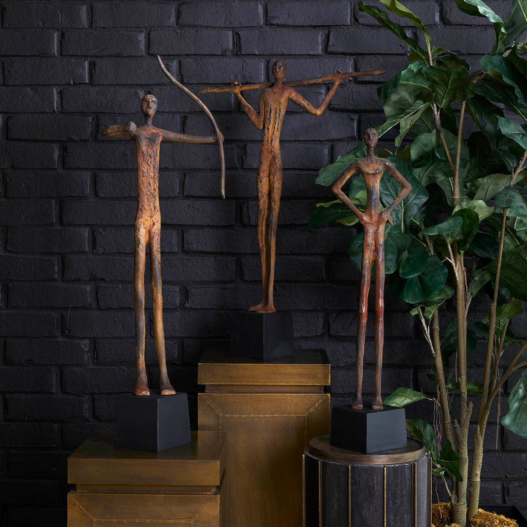 The Maasai sculpture trio encapsulates the rich cultural heritage of the African Maasai people. These tribal figures, representing the Maasai way of life, are crafted with a deep appreciation for tradition and history. Each sculpture bears a rustic finish, adding to their authenticity and heritage. The Maasai Hunter, Gatherer, and Shepherd sculpture bring to life the essence of the Maasai culture, depicting the roles and activities that have defined their way of life for generations. These figures are a celebration of the African Maasai people and their unique way of life. Invite the spirit of tradition, community, and enduring beauty with the Maasai sculpture.