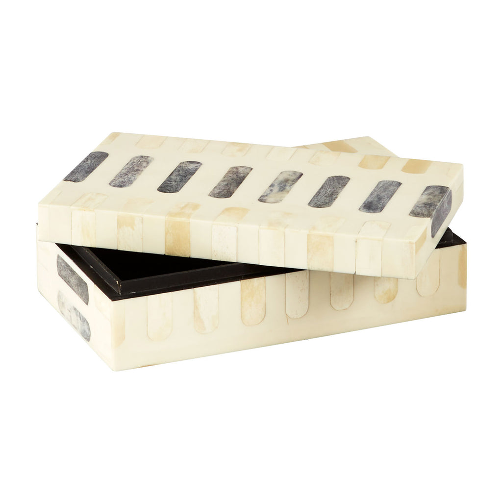 Cyan Design boxes fit right in to eclectic interior themes, blending functional storage with distinctive design. Offering protection and privacy in style, a box is the perfect addition to store belongings and clear clutter. These containers are exceptionally colorful and bring life to any interior space. Its color composition is enhanced by its pastel base. It also features adequate compartmental space for the most precious and sentimental objects. Display on a bedroom dresser, powder room counter, or sitting room coffee table to add a natural elegance to your ensemble.