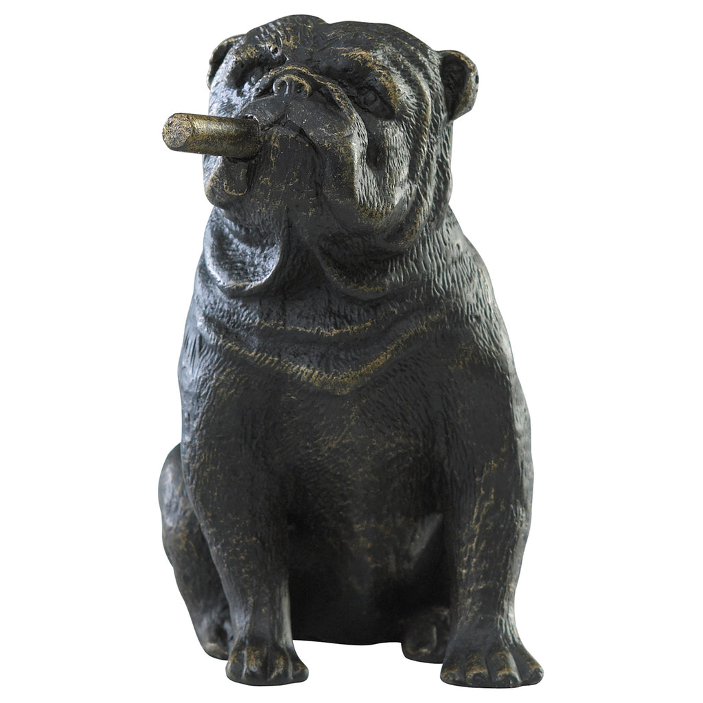 An homage to Churchill adds a distinctive whimsy and character to this bulldog inspired sculpture. A playful addition to a formal English country inspired decor, this old world finished piece is a humorous yet stunning piece.