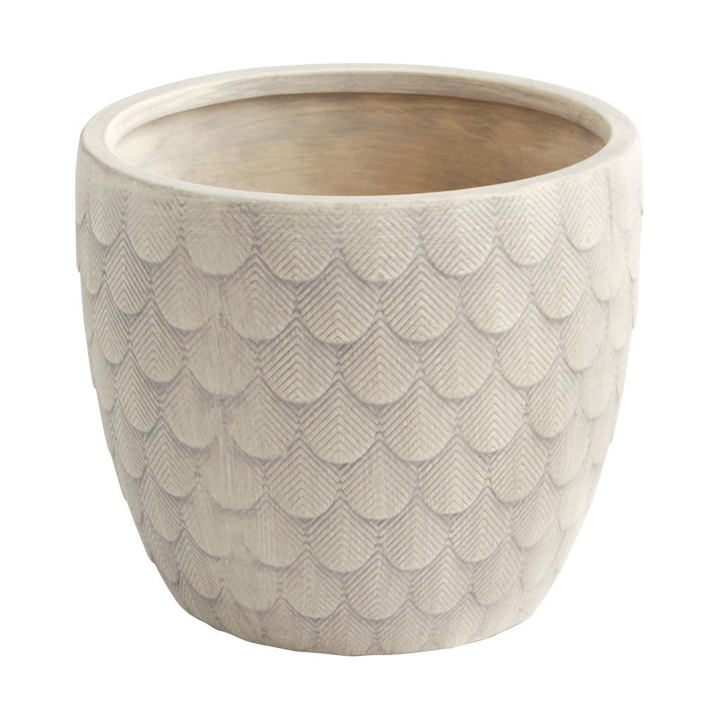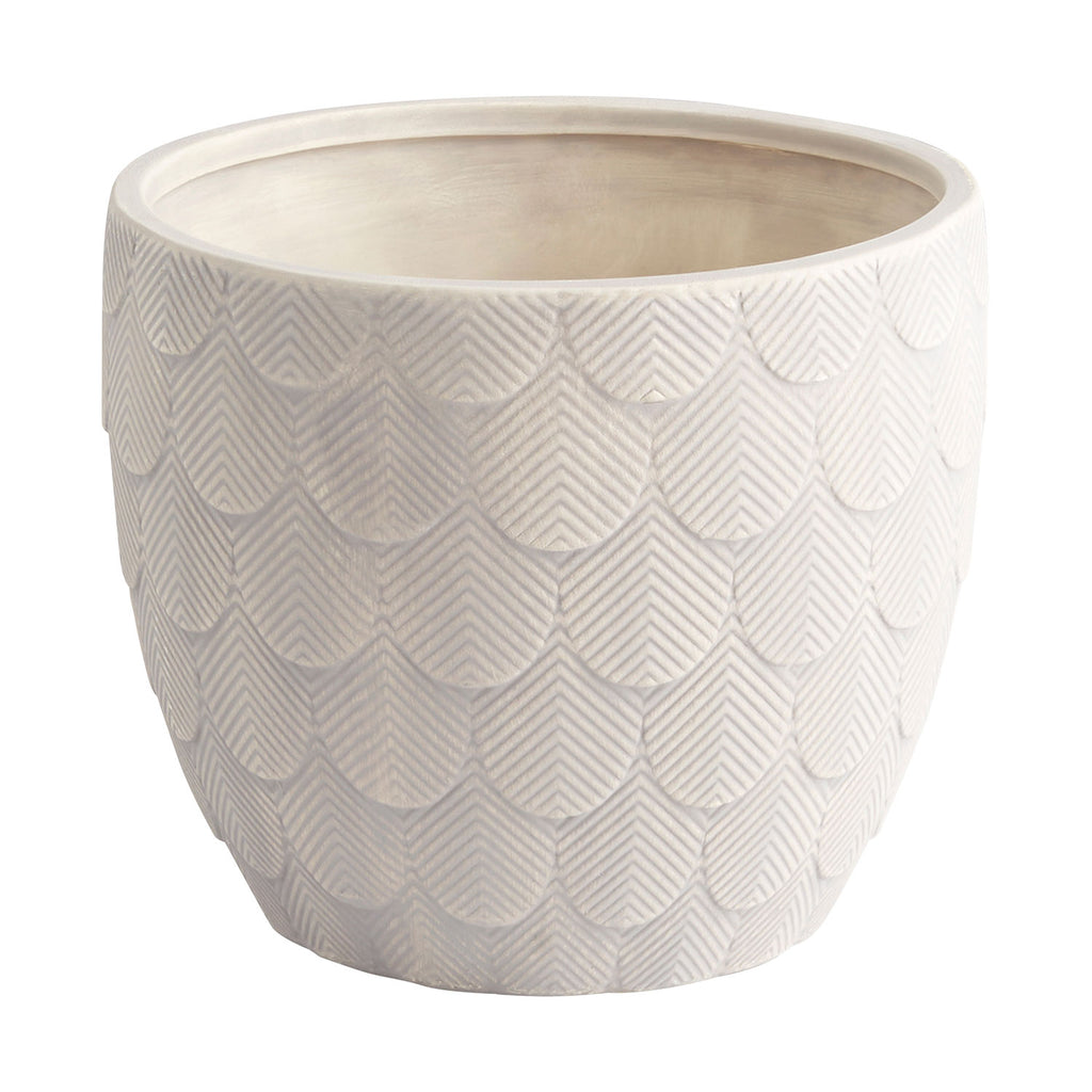 The Grecian sea God, Nereus, inspired this quartet of enigmatic planters. The emergence of aquatic overtones flows from a scale-like design sculpted from natural grey, unglazed ceramic. Four shapes and sizes complete the dynamic offering of the Cyan Design Nereus planter collection. Flank each side of an entryway or adorn a covered patio with the Nereus Tall planters, available separately.