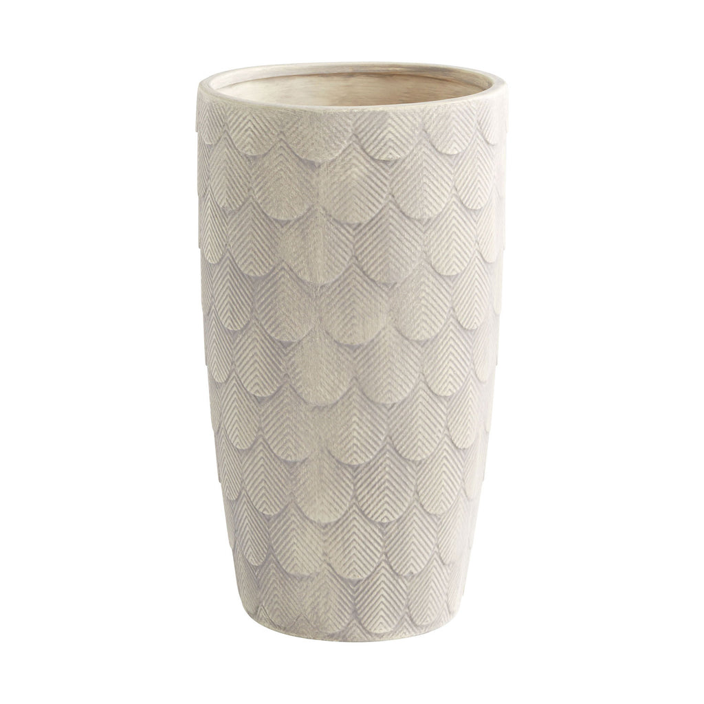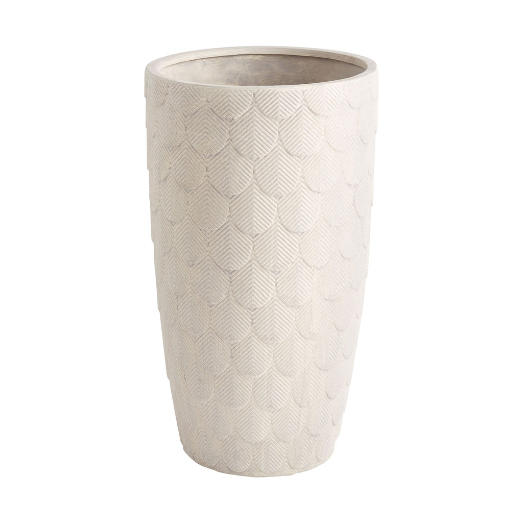 The Grecian sea God, Nereus, inspired this quartet of enigmatic planters. The emergence of aquatic overtones flows from a scale-like design sculpted from natural grey, unglazed ceramic. Four shapes and sizes complete the dynamic offering of the Cyan Design Nereus planter collection. Flank each side of an entryway or adorn a covered patio with the Nereus planters.