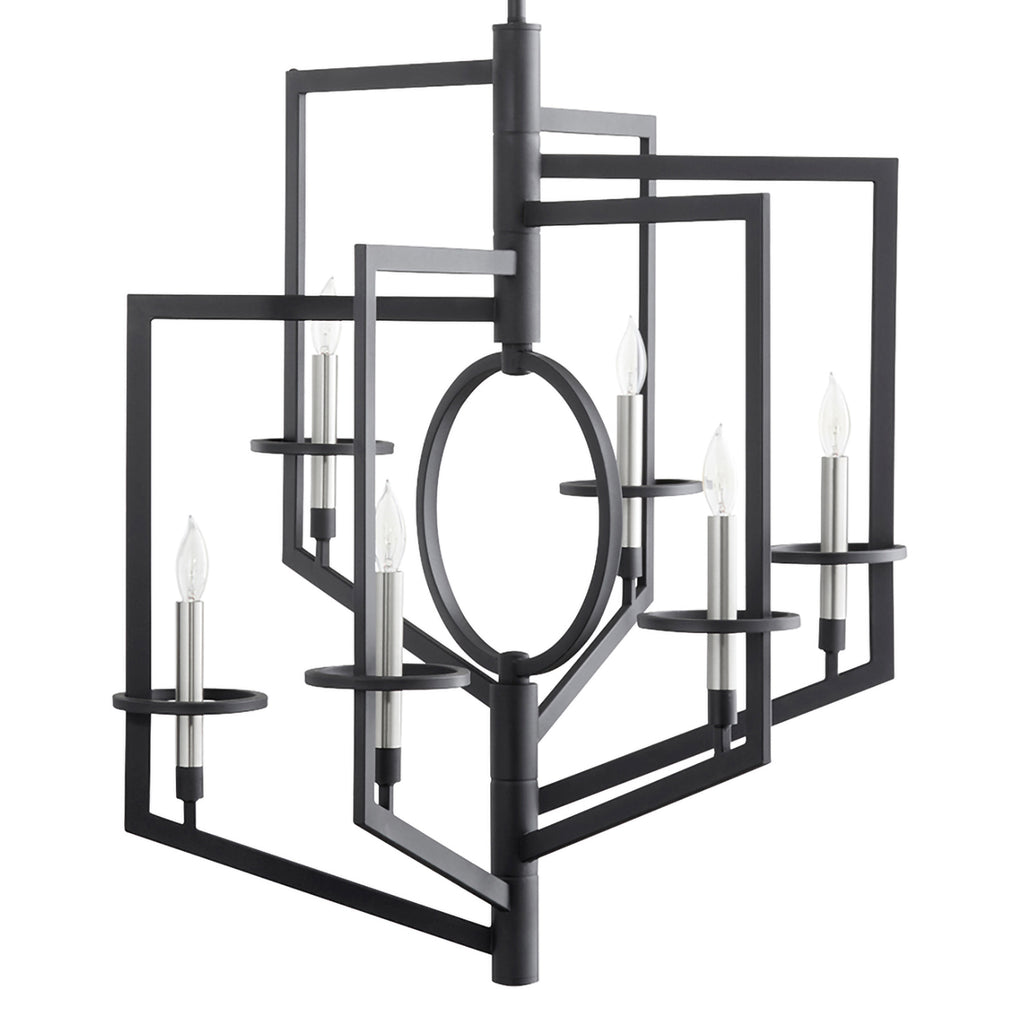 The Oxalis Chandelier is a modern twist on a traditional design. Switch up your look with included interchangeable aged brass, black, and satin nickel candle sleeves. This chandelier is a fashionable, decorative lighting fixture, perfect for residential and commercial living spaces.