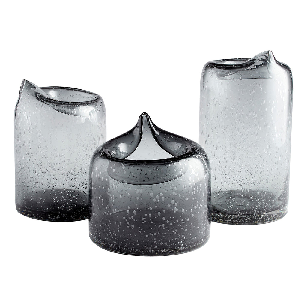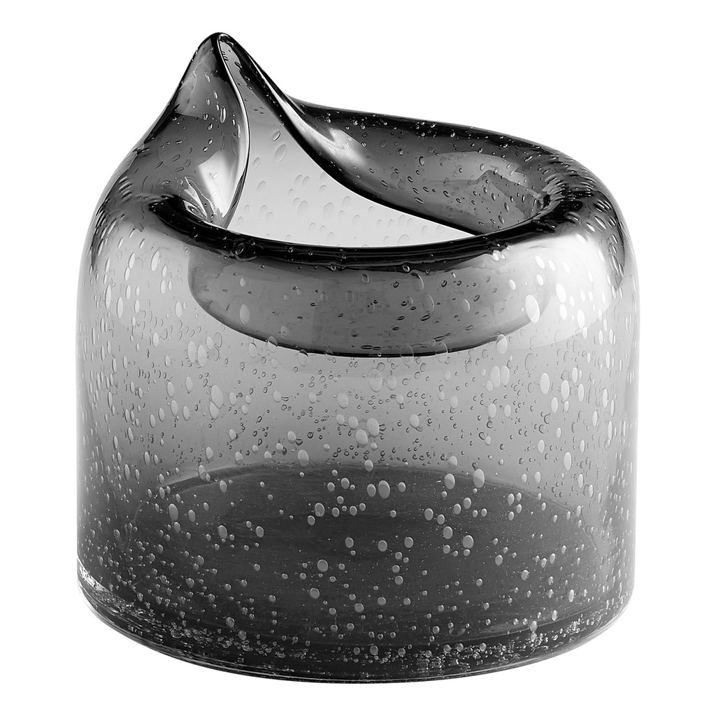 The Cyan Design Oxtail vase is an abstract take on a classic design. It sports an elevated spout for easy disposal of liquid. The Oxtail vase is adorned in a gradient dark-toned translucent surface finish. Perfect for displaying in pairs. This vessel is ideal for any home styling plans or commercial design projects.