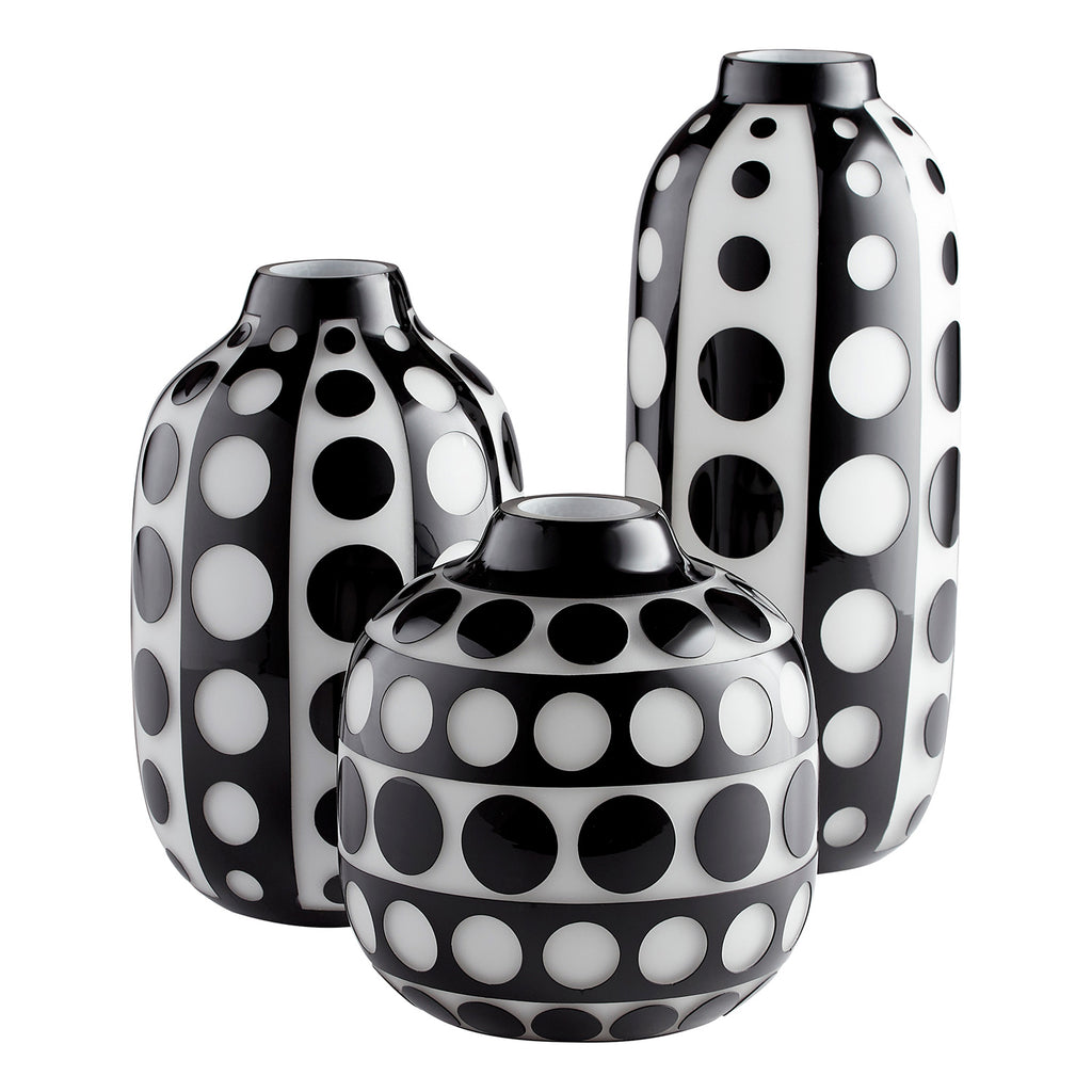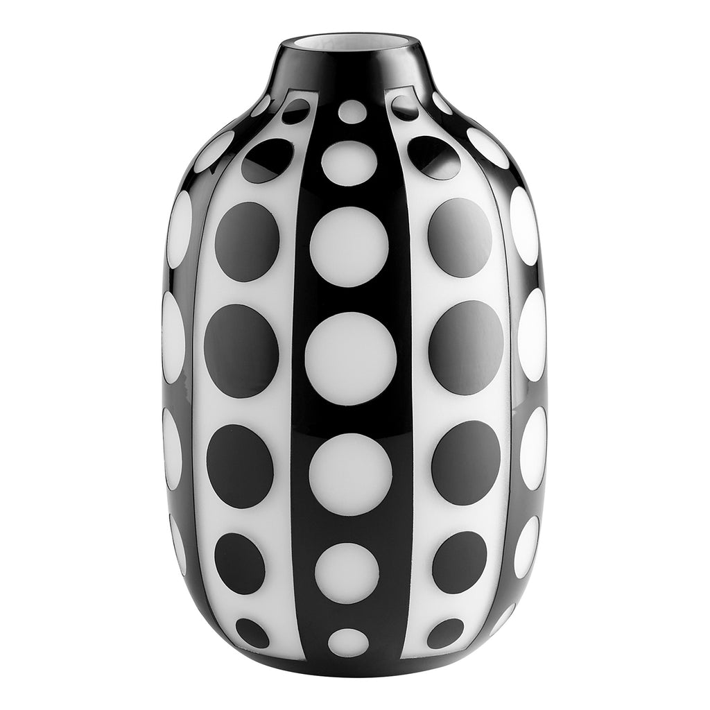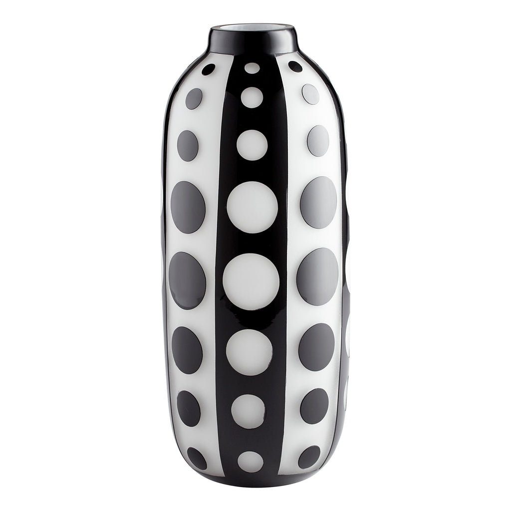 Decorate your home or commercial space with an adornment that's both unassuming and on-trend. Thanks to its classic bud-silhouette, the Cyan Design Petroglyph table vase is an attractive addition to any tabletop, counter display, or shelf styling. The monochromatic polka dot design adds versatility, enabling this accent to simultaneously offer your design plans both modern appeal and minimalist Scandinavian charm.