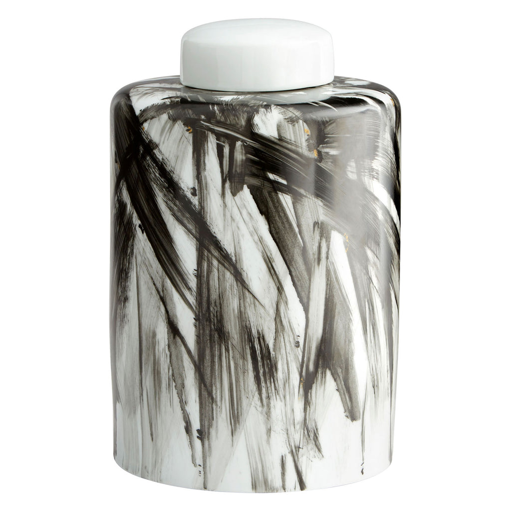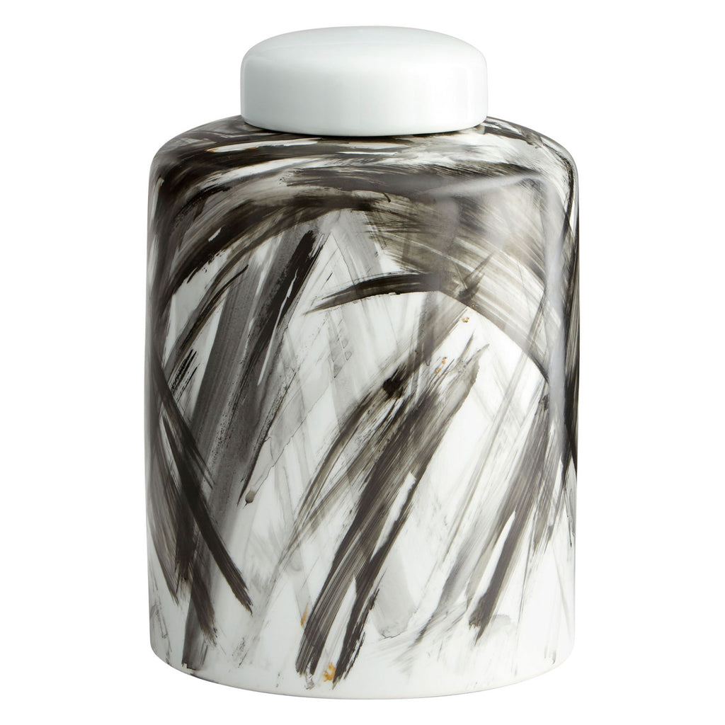 Give any room an eclectic boost with a lidded jar from Cyan Design. This unique storage décor offers versatility and function while meshing with your distinctive style. This small abstract art inspired container is a fine addition to stylish storage solutions. Contemporary white and bold black sweeps of color make this ceramic charmer ideal for a thoroughly modern kitchen or bathroom.