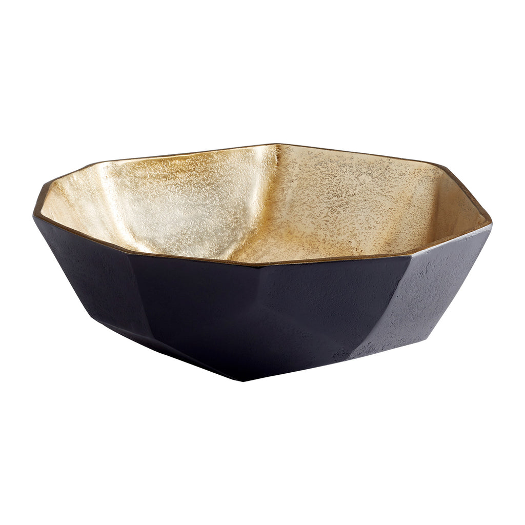 With the look of a classic vessel, the Cyan Design Radia decorative aluminum tray evokes medieval influence with a modern twist. The two toned Matte Black and Gold finish on a textured surface add depth to the sense of mystique. Display together in any home, commercial, or hospitality ensemble for elevated elegance.