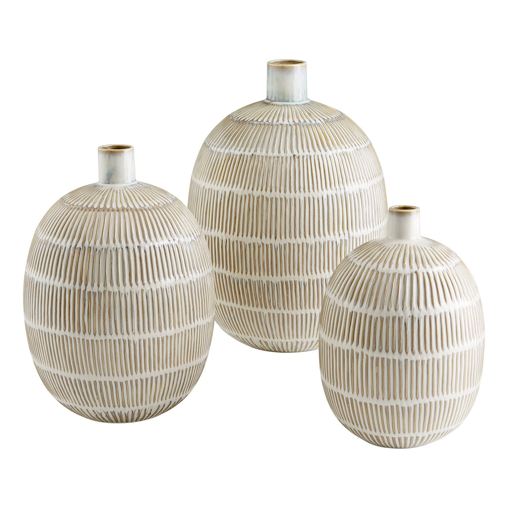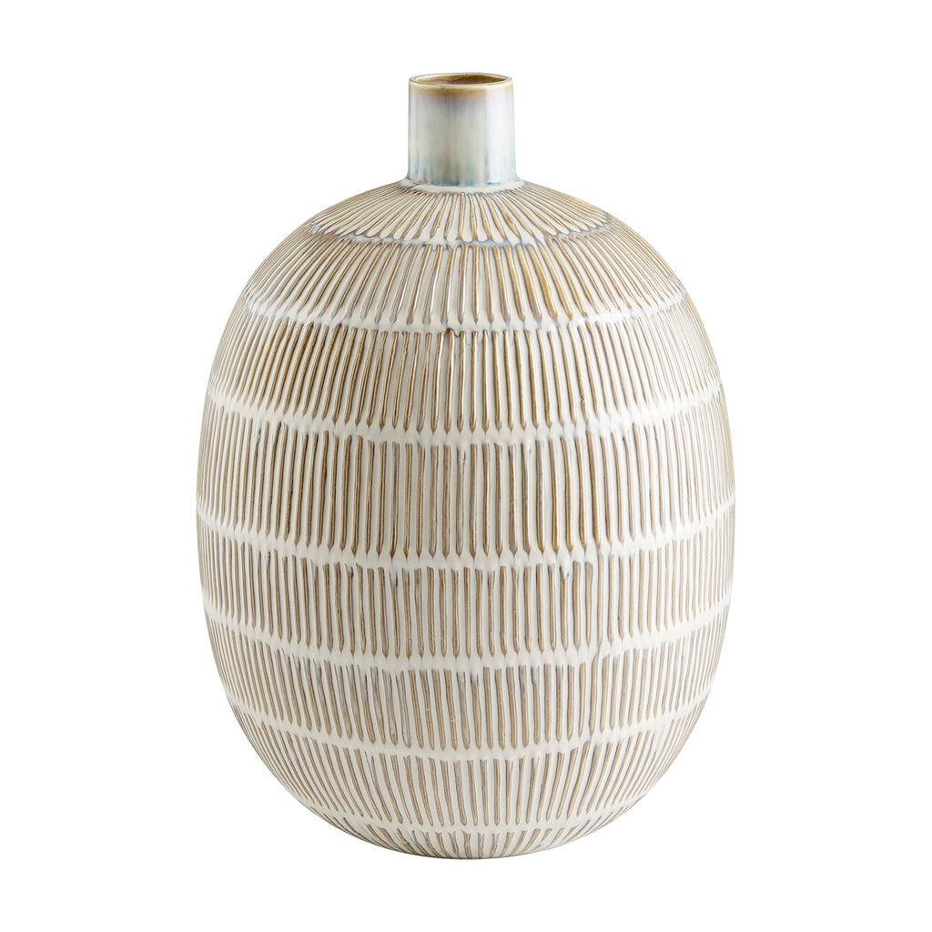 Vases from Cyan Design compliment a bouquet or stand alone on display with distinctive style. These decorative accents add an eclectic feel to contemporary spaces. Add a rustic touch to your entryway or dining room table display with the eye-catching Cyan Design Saxon vase. Sporting a rounded silhouette in an Oyster Blue finish, this ceramic design is the quintessential accessory for any charming modern farmhouse or boho-chic appeal.