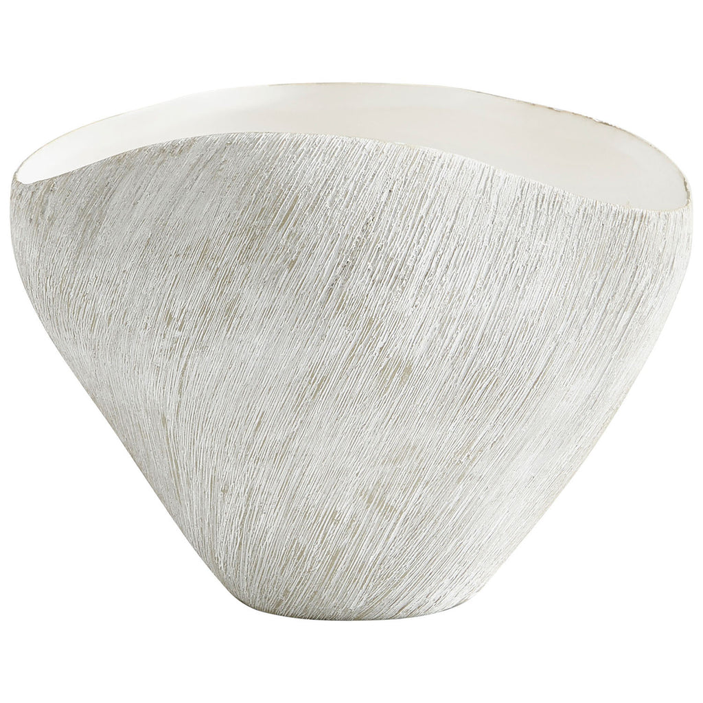 Explore the depths of intrigue with this large natural stone ceramic vase, great on top of any fireplace mantle. The striated exterior creates brushed lines analogous to a sea shell. A reactive interior glaze boosts the organic appeal of this vase by highlighting its natural texture, leaving each piece to be unique from one another.