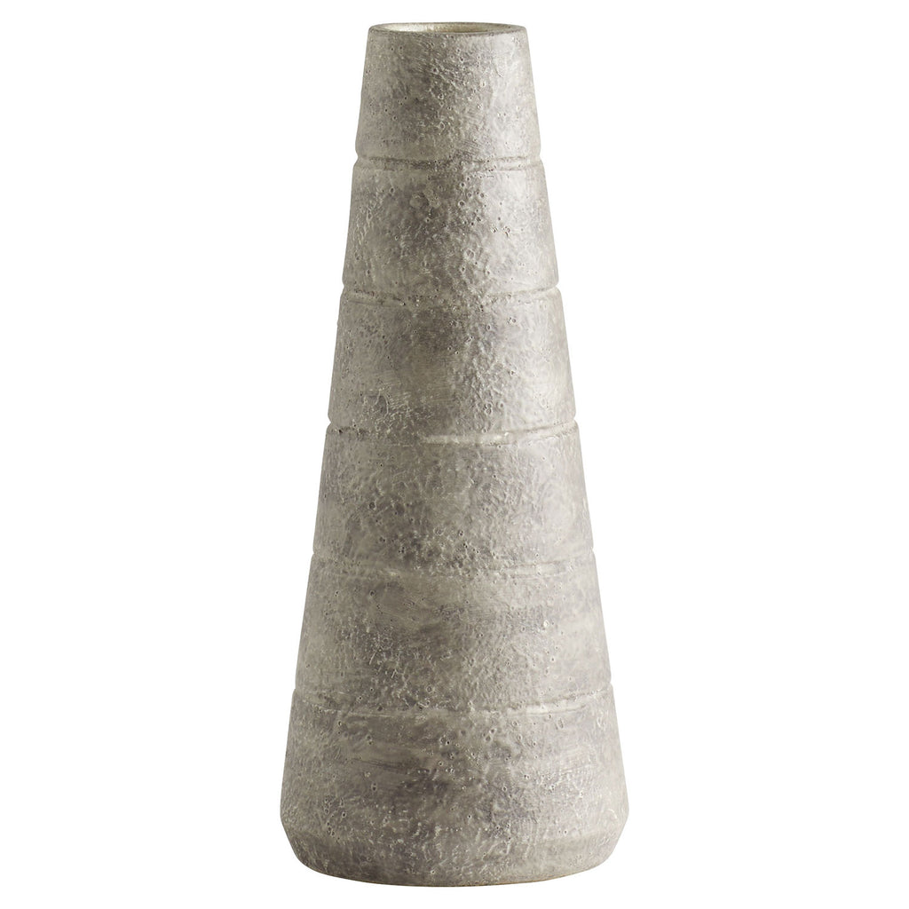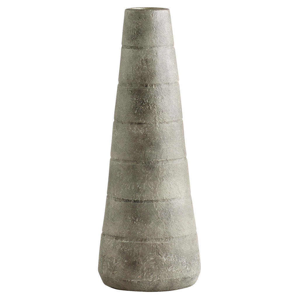Thera, the ancient name for the volcanic island of Santorini, Greece, was influential in the design of this collection of cone-shaped earthenware vases. The Cyan Design Thera collection features a medium-width base tapers to a slender rim with horizontal lines etched along the sides. A textured finish is applied, giving the series a concrete-like exterior. Display together or individually in any poolside covered patio design, kitchen, entryway or washroom. Available in two sizes and colorways.
