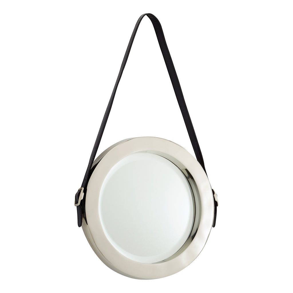 Looking for an upgrade on your wall decor? The Cyan Design Round Venster accent mirror offers useful reflection, and can help make your space feel larger, while adding a decorative touch to your room's aesthetic. This geometrically inspired, circular mirror features a metal frame and glossy glass surface, and is a great option for any room looking for a clean minimal touch. Hung on a Blue leather strap from the accompanied hardware, it also delivers warm-metal appeal with its Antique Brass or Nickel finish for an en vogue touch, perfect for varying vibes and ensembles.