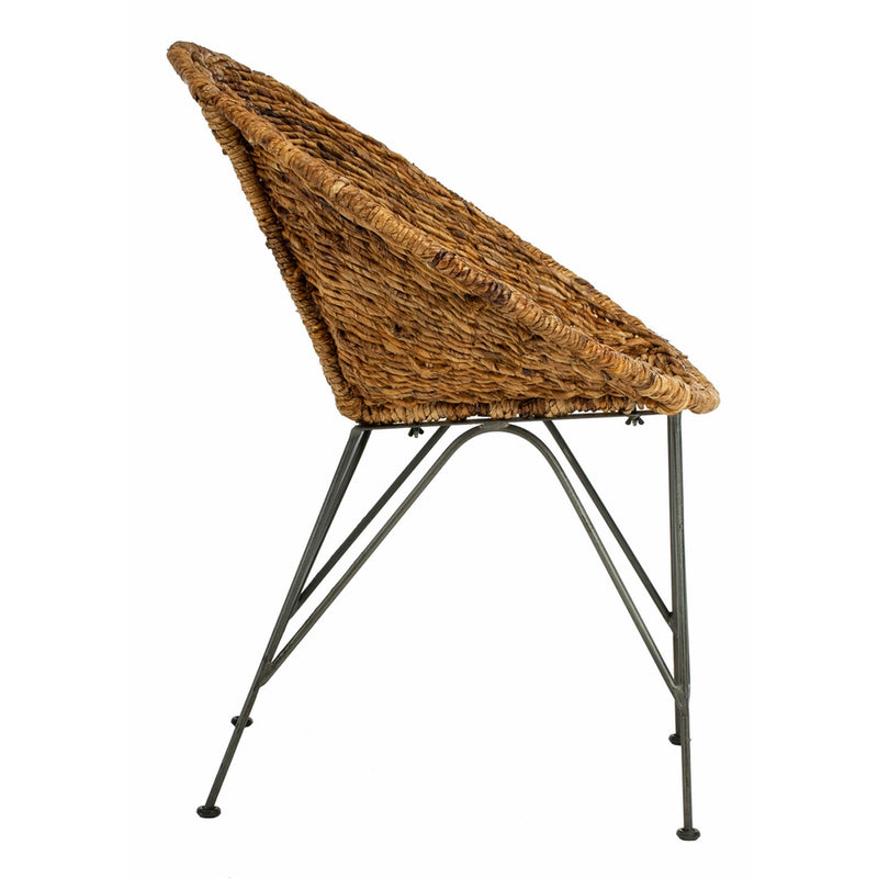Bring designer style to the living room with this contemporary rattan accent chair. A blend of chic modern geometric shapes and natural materials, its luxurious grey wash finish and rich dark steel legs blend into any décor. An instant everyday escape.