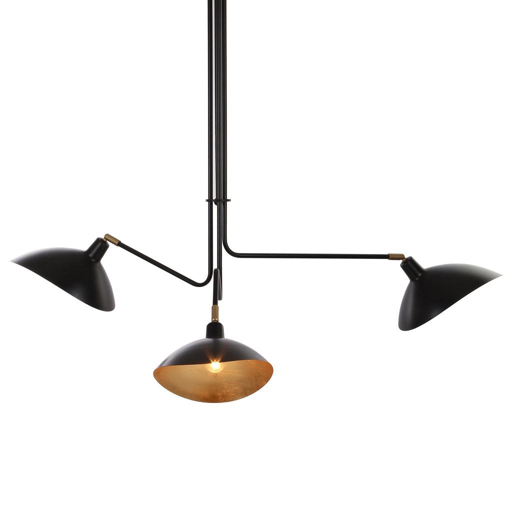 Bring character and style to any living room or dining room with this modern metal Dawson pendant. The dimension and movement of its three black metal pendants make it a collectable. Designers love the soft glow created by its luxe inner gold leaf finish.