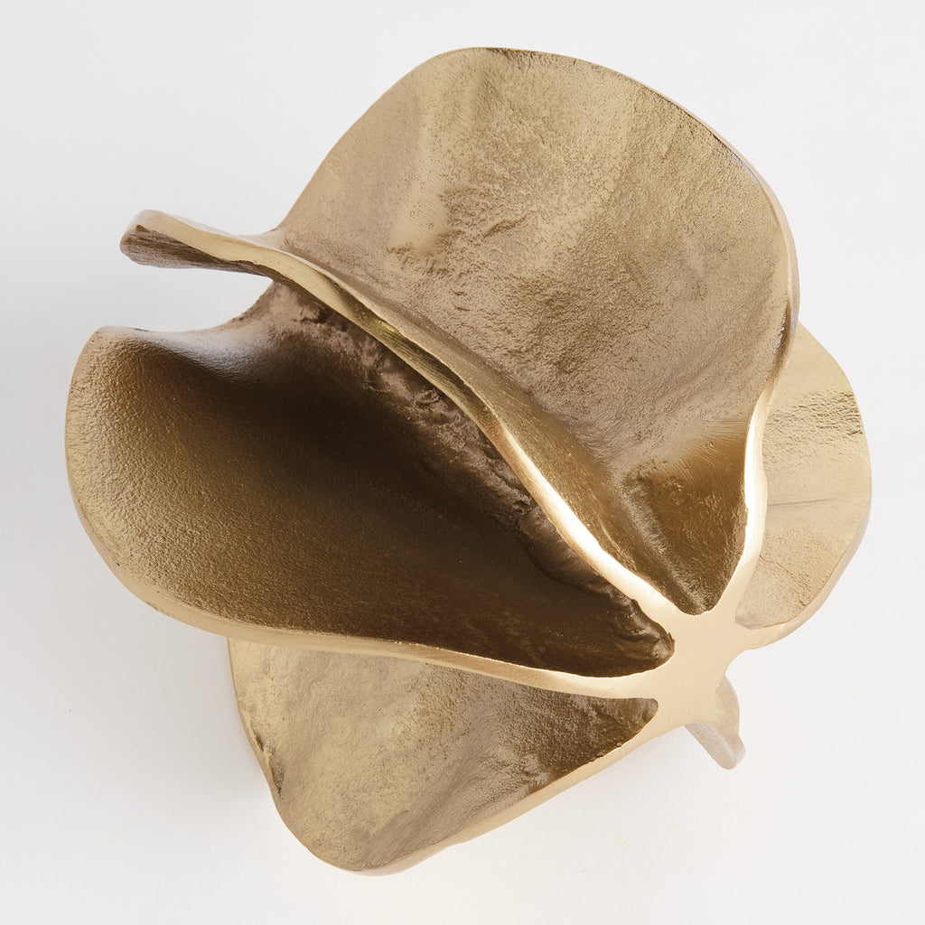 The Devin Sculpture Large is a decorative home accent designed to elevate your space. Crafted from aluminum, finished in gold, it brings texture, warmth, and timeless style to any room. With a cast aluminum sculpting method, this nature-inspired organic sculpture is a unique accent. A simple, yet sophisticated work of art for ottoman, desktop or bookshelf.