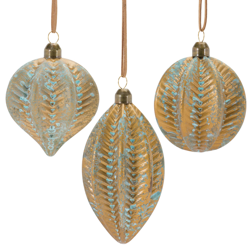 Distressed Ribbed Glass Ornament Set of 12