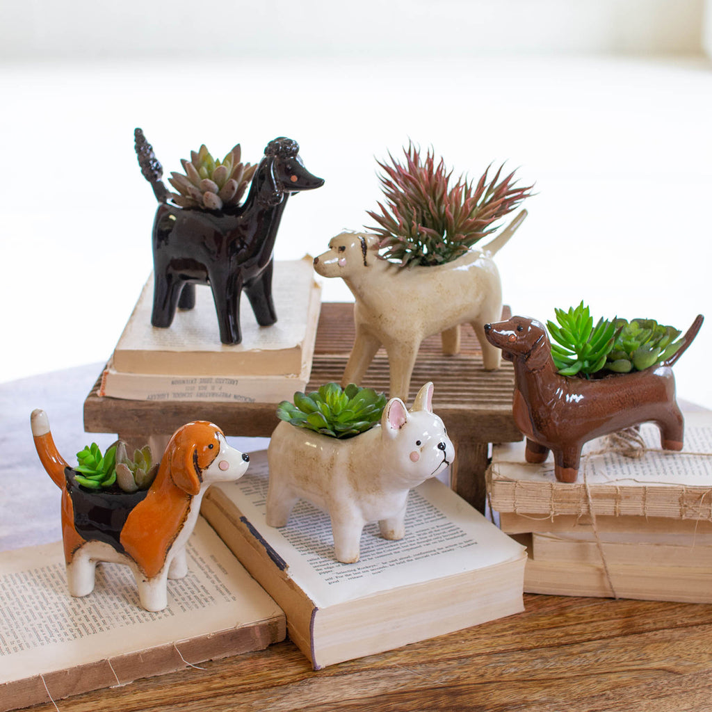 Woof! Miniature dogs of different breeds make up this set of quirky planters. These five succulent planters are a dog-gone good gift for yourself or any dog-lover. Arrange them together for a mini dog park!