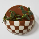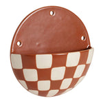 Add a chic, subtly trendy display to a gallery wall or entryway with the Doren Wall Planter. This watertight ceramic indoor planter features a hand painted, terracotta checkerboard pattern & 3 small holes for securing to the wall. Fill with air plants, a succulent, car keys, or other household knick knacks.
