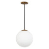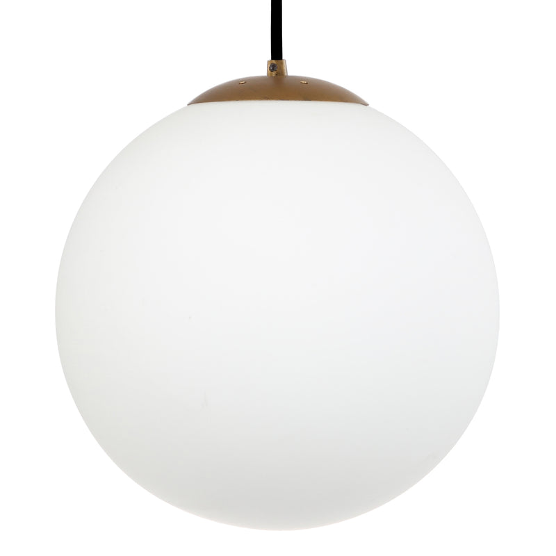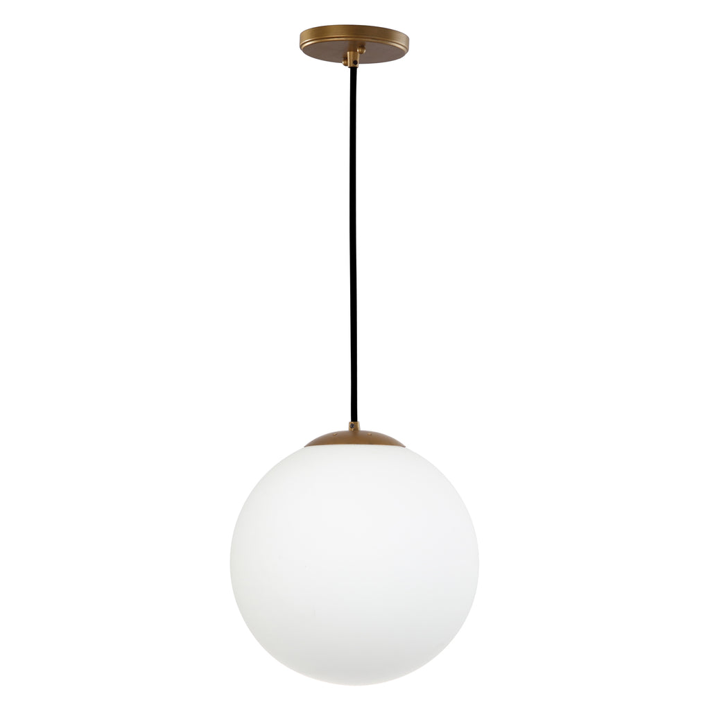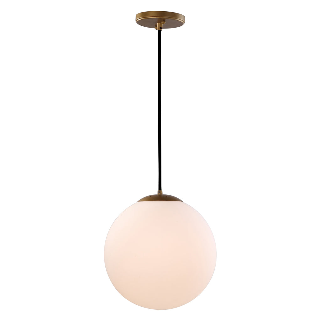 Add a touch of sleek and sophistication to your décor this contemporary Dover pendant. Clean lines create its elegant simplicity while its antique gold finish and white glass globe bring instant character to any living room, dining room, hall or kitchen.