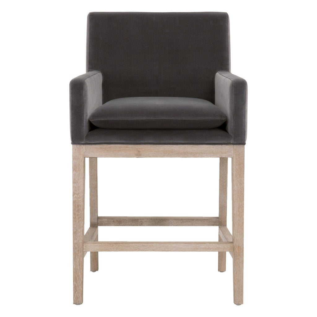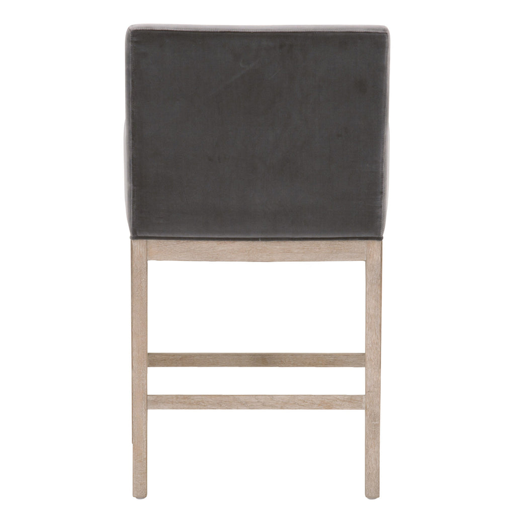 The Drake counter stool from Essentials for Living in transitional style featuring velvet upholstery and a solid oak base.