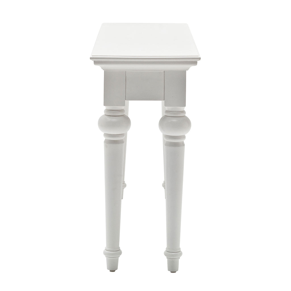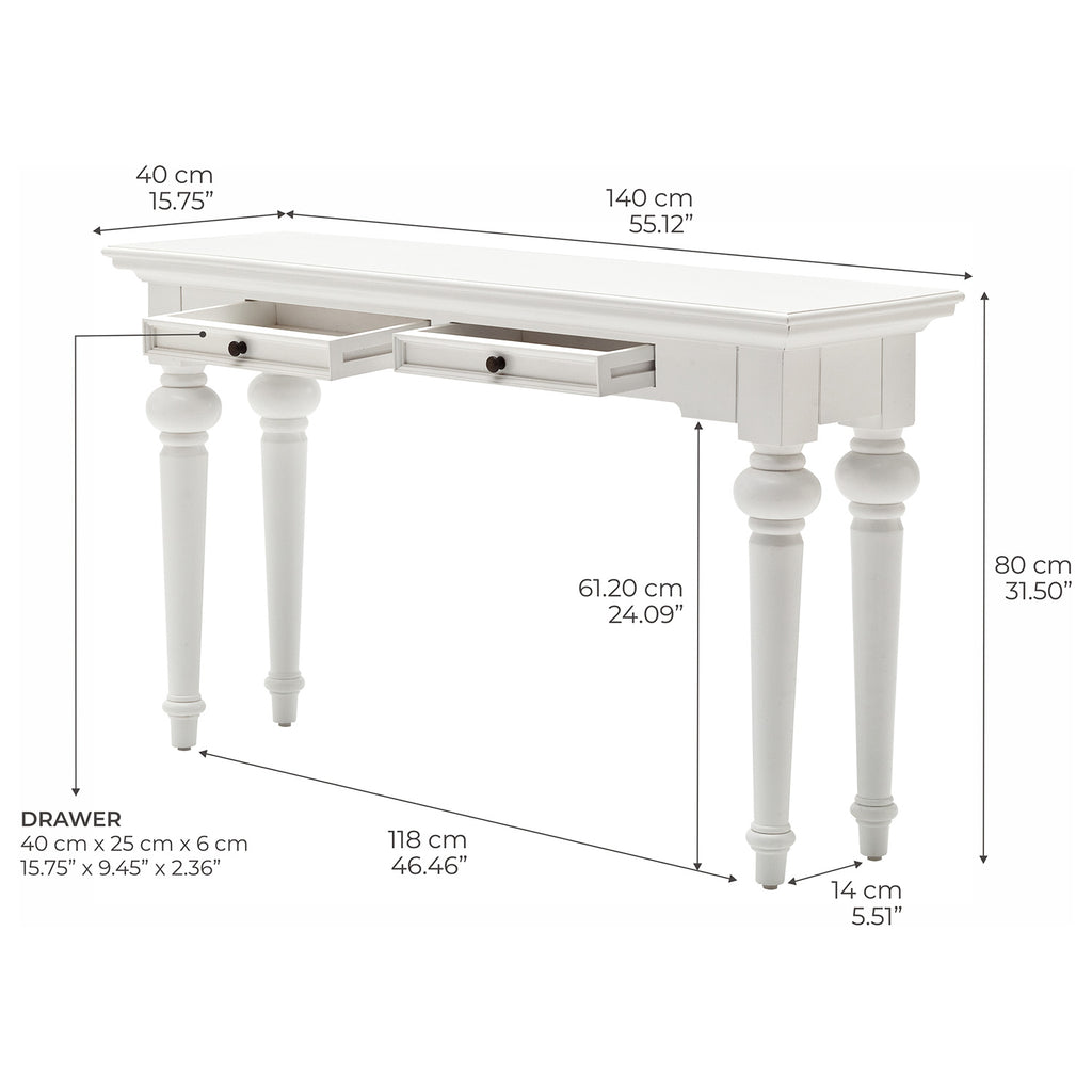 Dunwich is a design family for the most elegant of homes. The beautifully curved profiling of the Dunwich collection add depth and character to the room of choice. The rustic design paired with a classic white finish effortlessly make these timeless pieces the centrepieces. Once you have a console table in your home, you’ll wonder how you ever managed without it. Not only does it provide space to showcase a vase, lamp or treasured ornament, but can also become that go-to place to keep everyday essentials, be it keys or a hallway notepad and pencil. And with double drawer space, it means clutter stays contained.