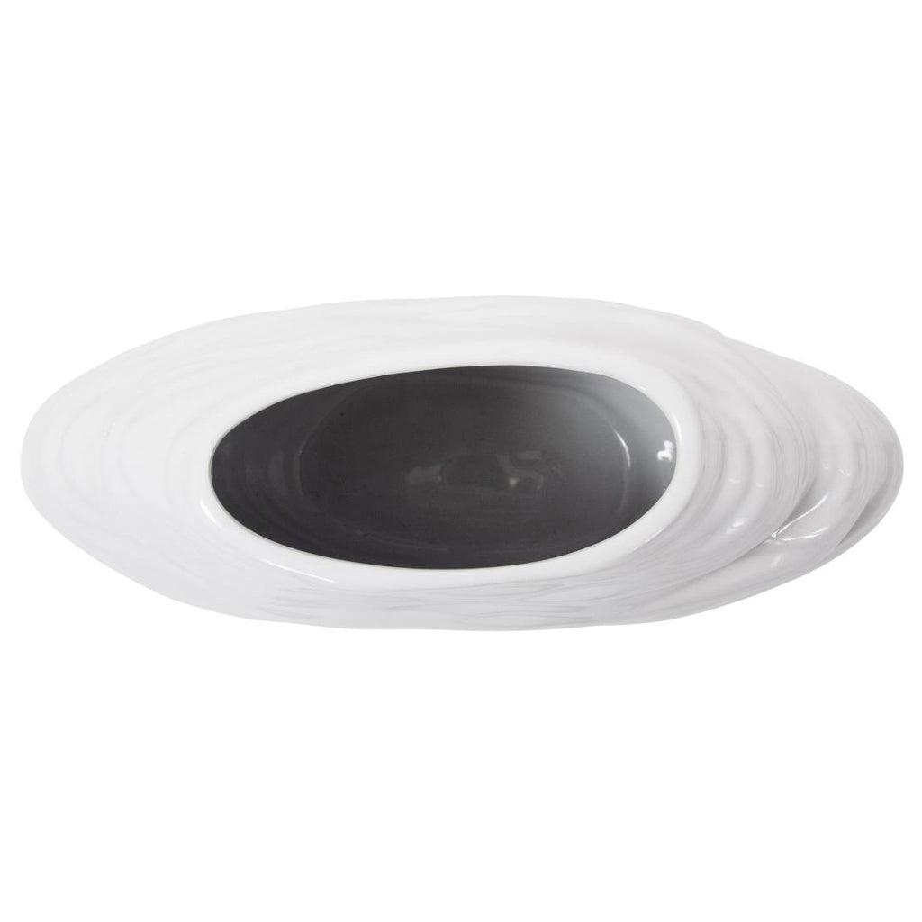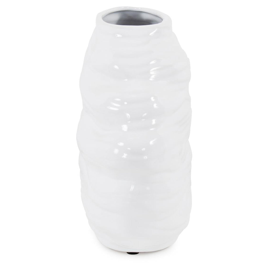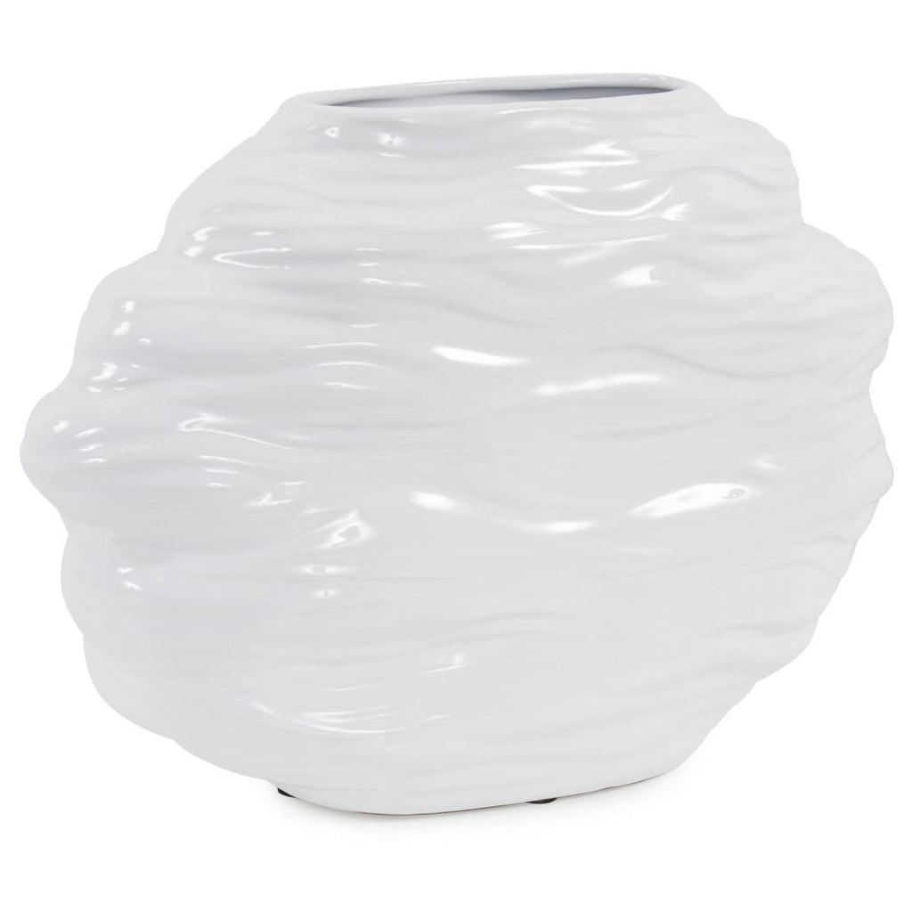 The Ebb Vase, Short - The constant flow of wave after wave coming into the shore was the inspiration for the Ebb collection. Each ceramic piece is beautifully hand painted an finished in a glossy white color. Standing alone or the complete collection is used together, these pieces can be the perfect resting place for a few fresh flowers or just as an interesting textural work of art.