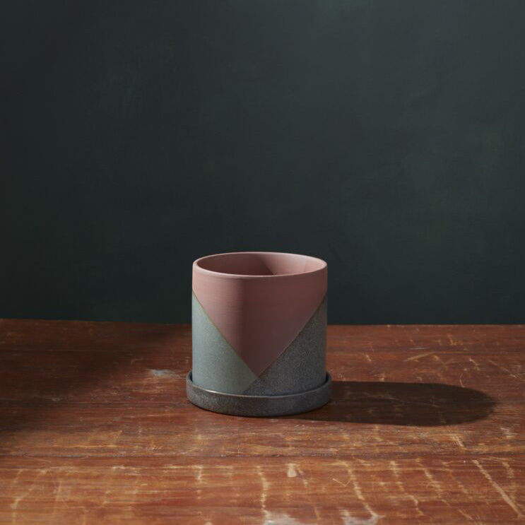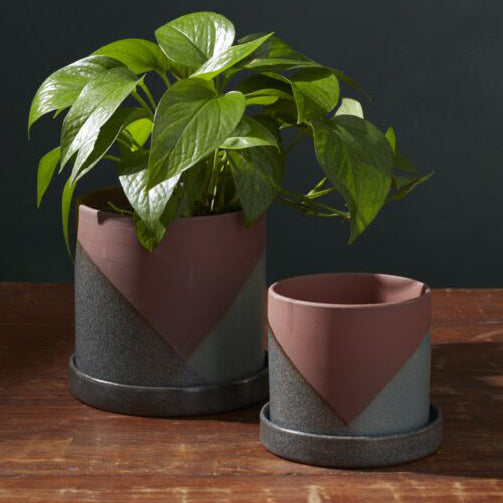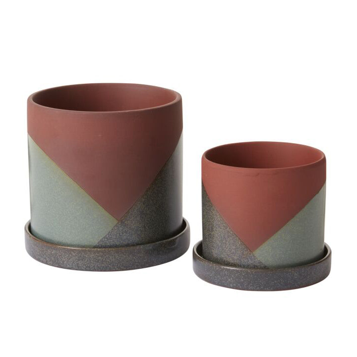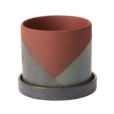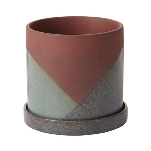 Layered glazing on the medium terracotta El Cerro Pot creates an artistic flair for your shelves. Beautiful green contrasts against the warm terracotta base. A drainage hole keeps plants from holding excess moisture, while a saucer protects surfaces.