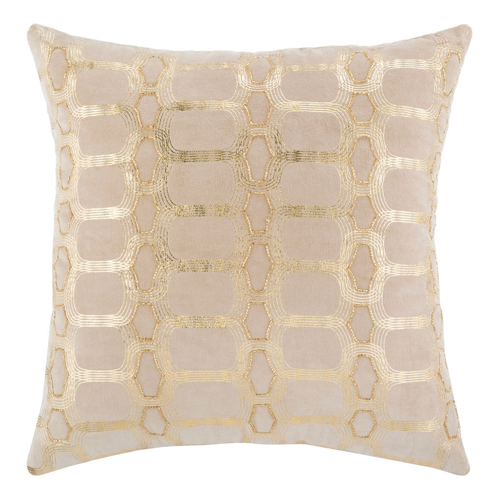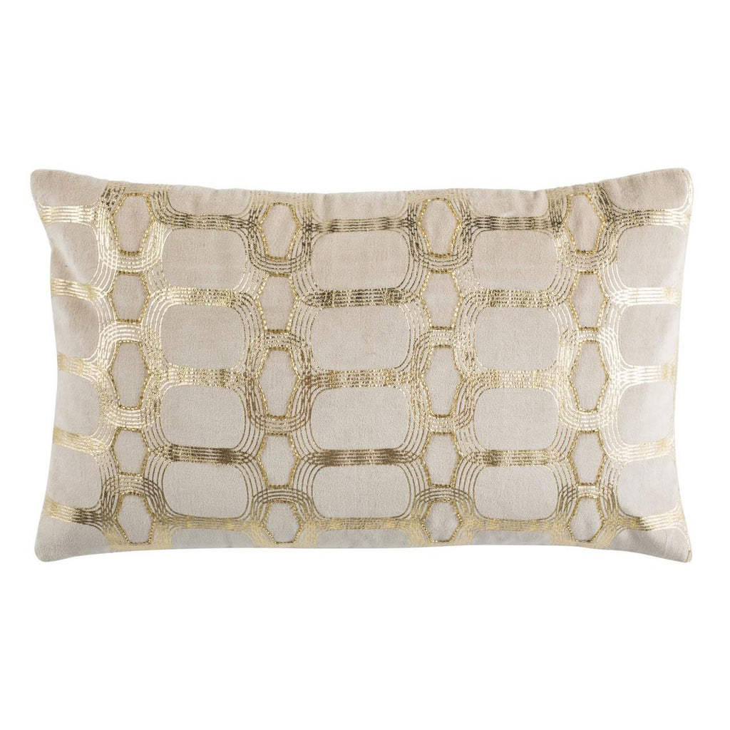 This metallic throw pillow is bold and gold, playing fashionably well with urbane décor. A geometric pattern of shimmering tinsel brightens any sofa, chaise or bench, adding exquisite visual dimension to the living room or bedroom.