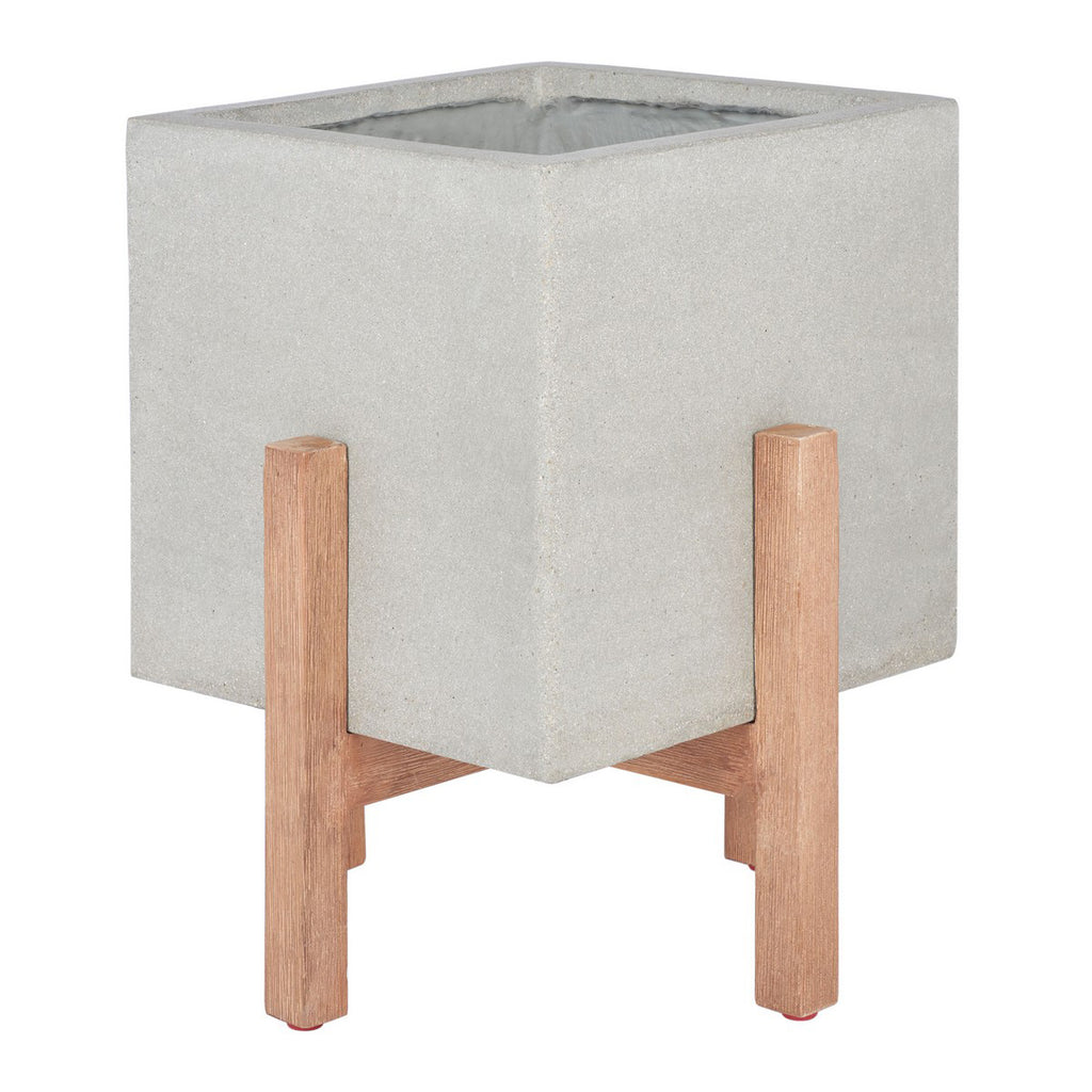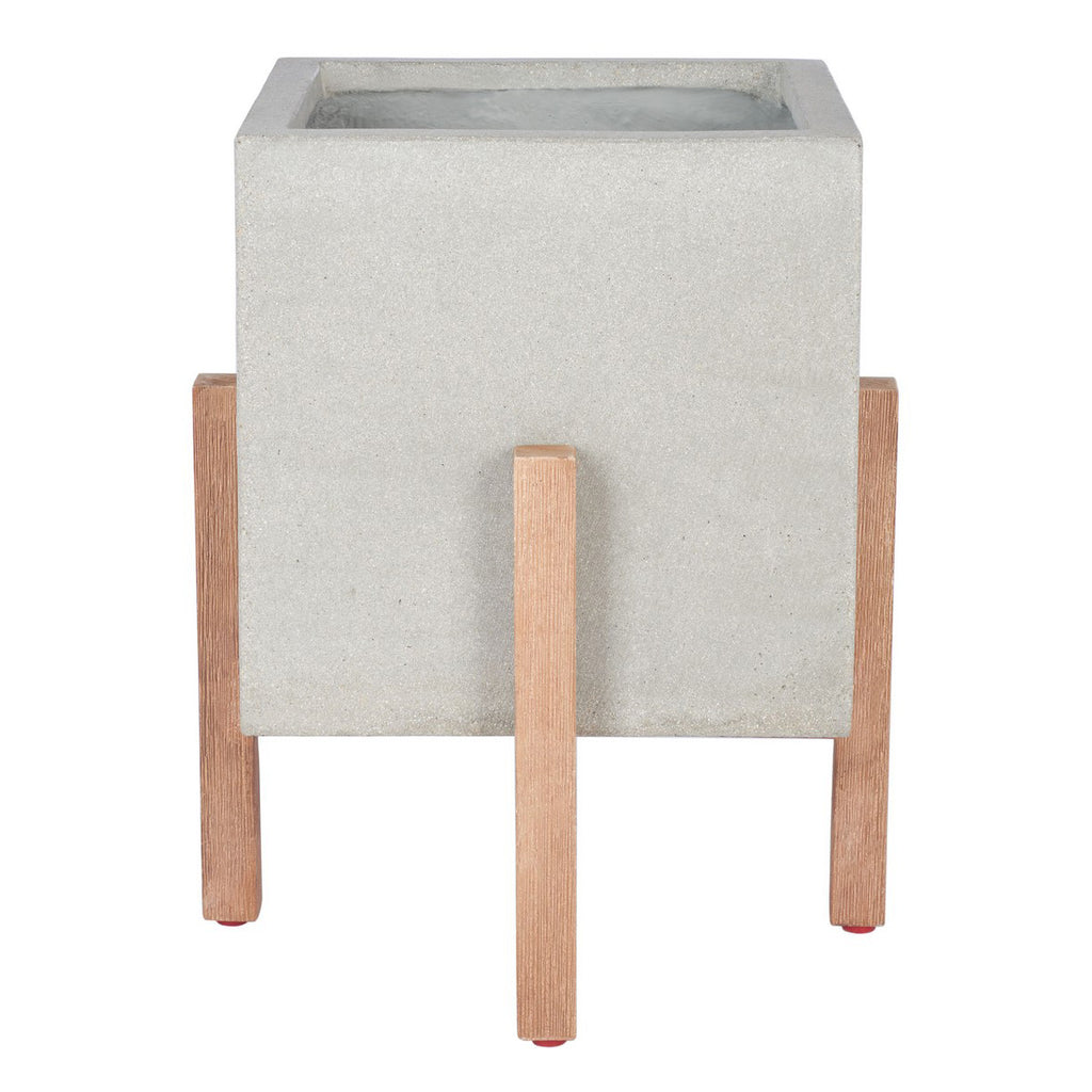 Bring sleek minimalism to the great outdoors with the Elerkey Indoor/Outdoor Planter. Elerkey's stark angles pair well with the organic shapes of flowers, giving any porch or patio a touch of modern chic. The light grey or black hue of its concrete cube highlights the natural finish on its acacia legs.