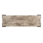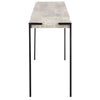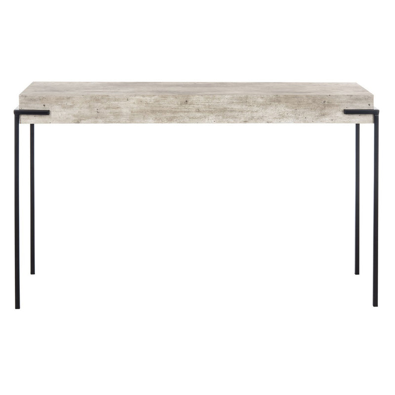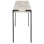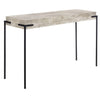 Graciously elevated on slender black iron legs, this sculptural contemporary rectangle console table is a work of art. Designed to curate precious objects, its finely crafted Light Grey and Black wood top blends seamlessly into any entry or living room.