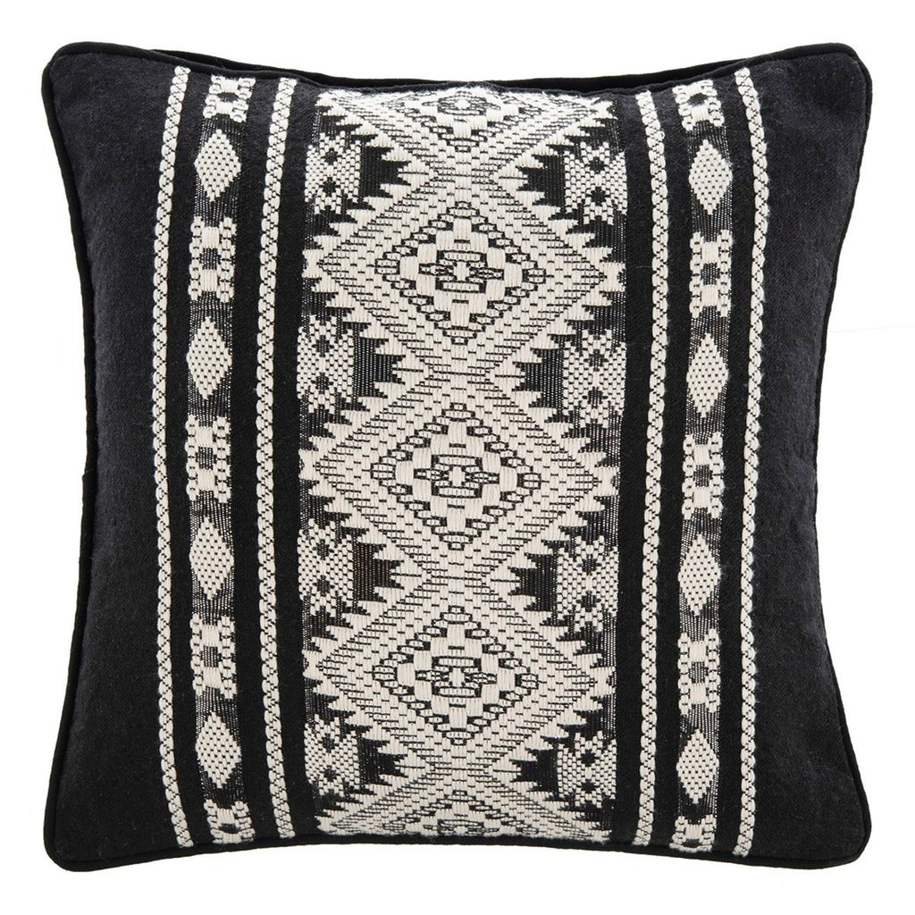 The accent throw pillow showcases classic tribal designs as boho-chic accent decor. The evocative patterns of this throw pillow are beautifully accentuated in rich Ivory against a deep Ebony cover. A luxurious fusion of cotton and satin adds a touch of elegance, making this accent pillow irresistibly soft to the touch. Features a zipper on the back cover for convenient care and cleaning.