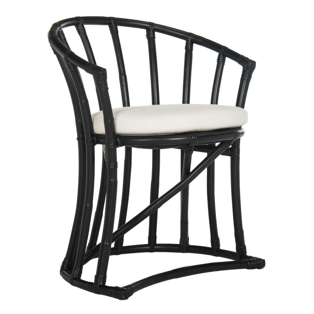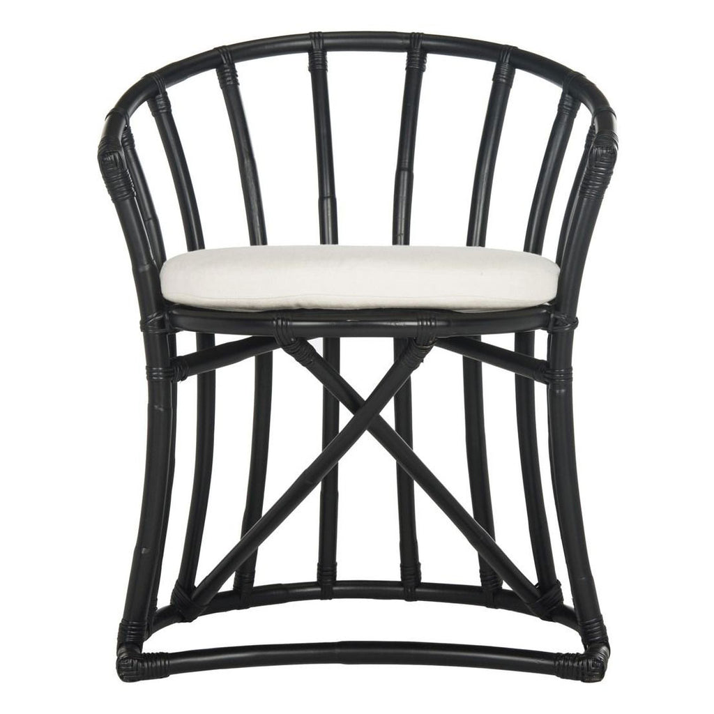Finished in black, this modern rattan accent chair was inspired by Bali’s most celebrated five-star hotel. This updated version of the iconic seating option features sleek curves, clean lines, and 100% cotton upholstery to refresh any space.