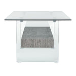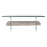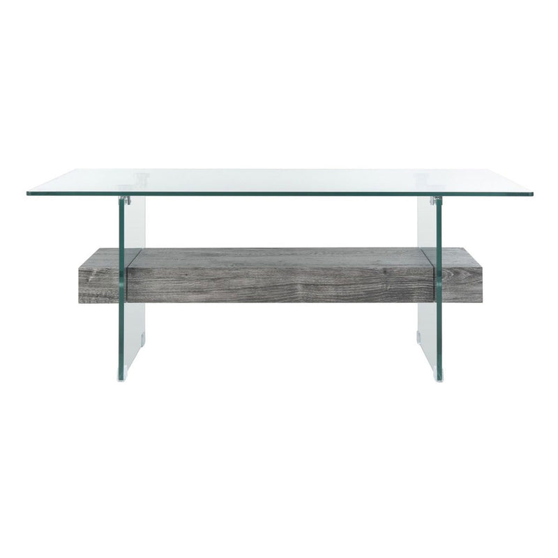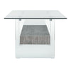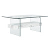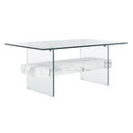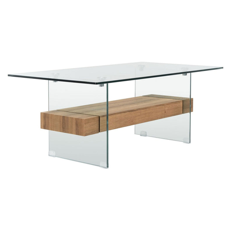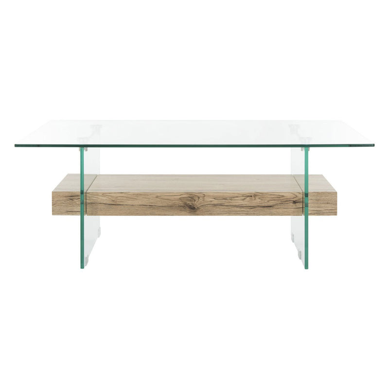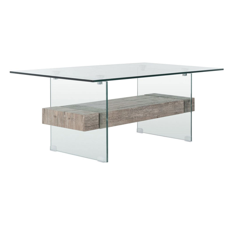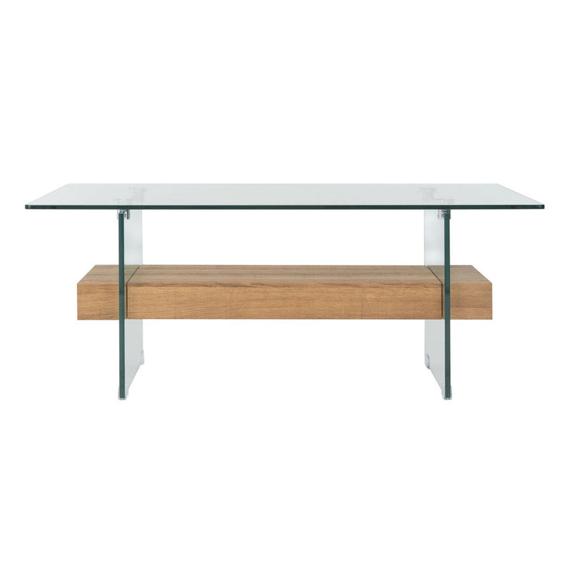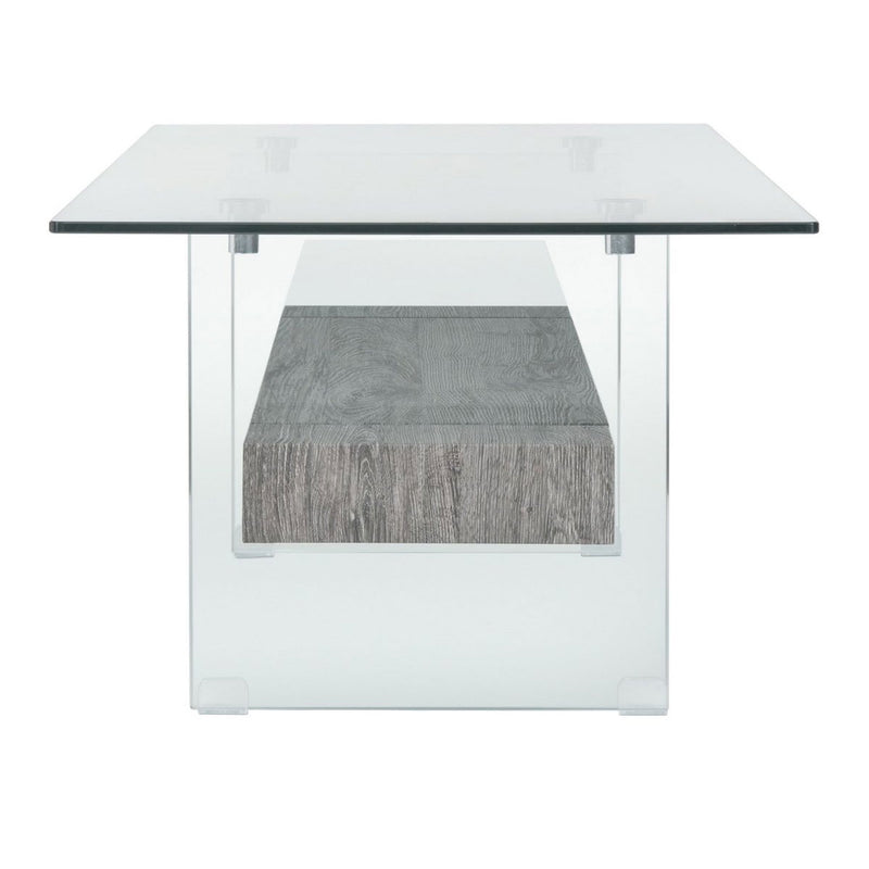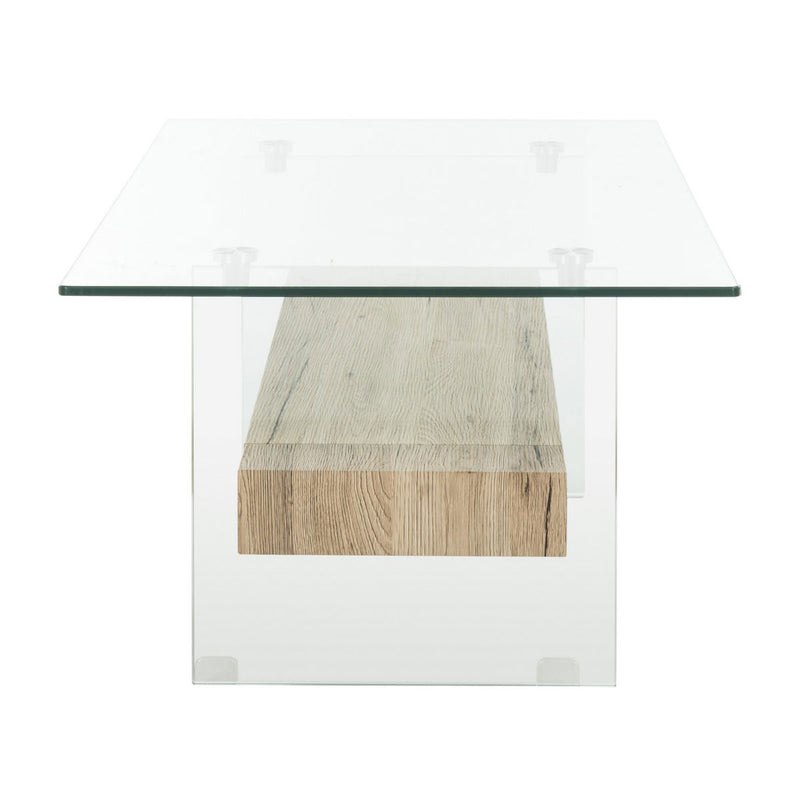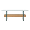 Inspired by the design of Paris’ top art foundation, this modern glass coffee table makes a grand statement in any living room. Crafted almost entirely of transparent glass, a black oak finish on its single shelf lends warmth and character.