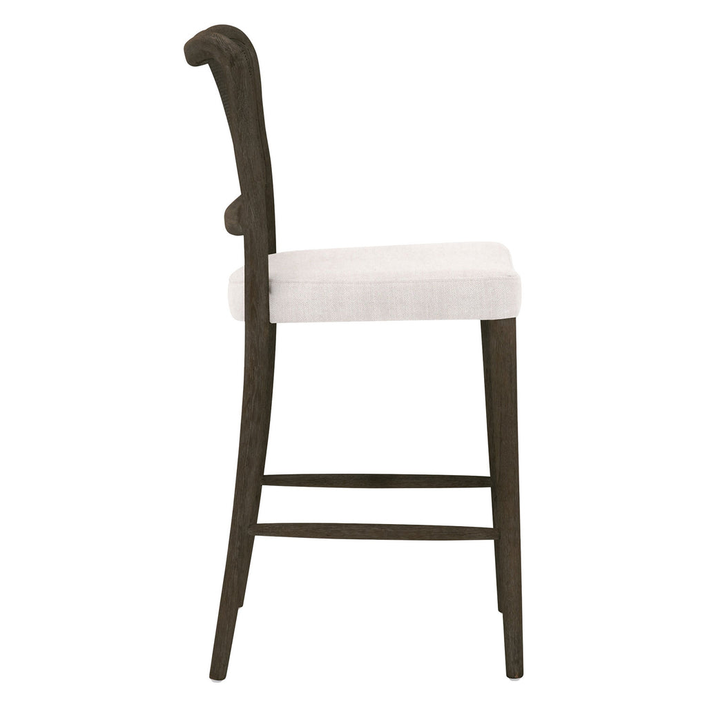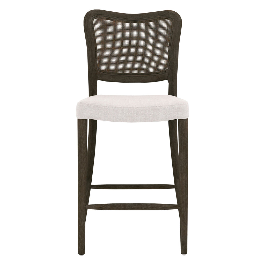 The Essentials for Living Cela counter stool in Transitional style counter stool featuring solid wood frame with a thin cane back and upholstered seat.