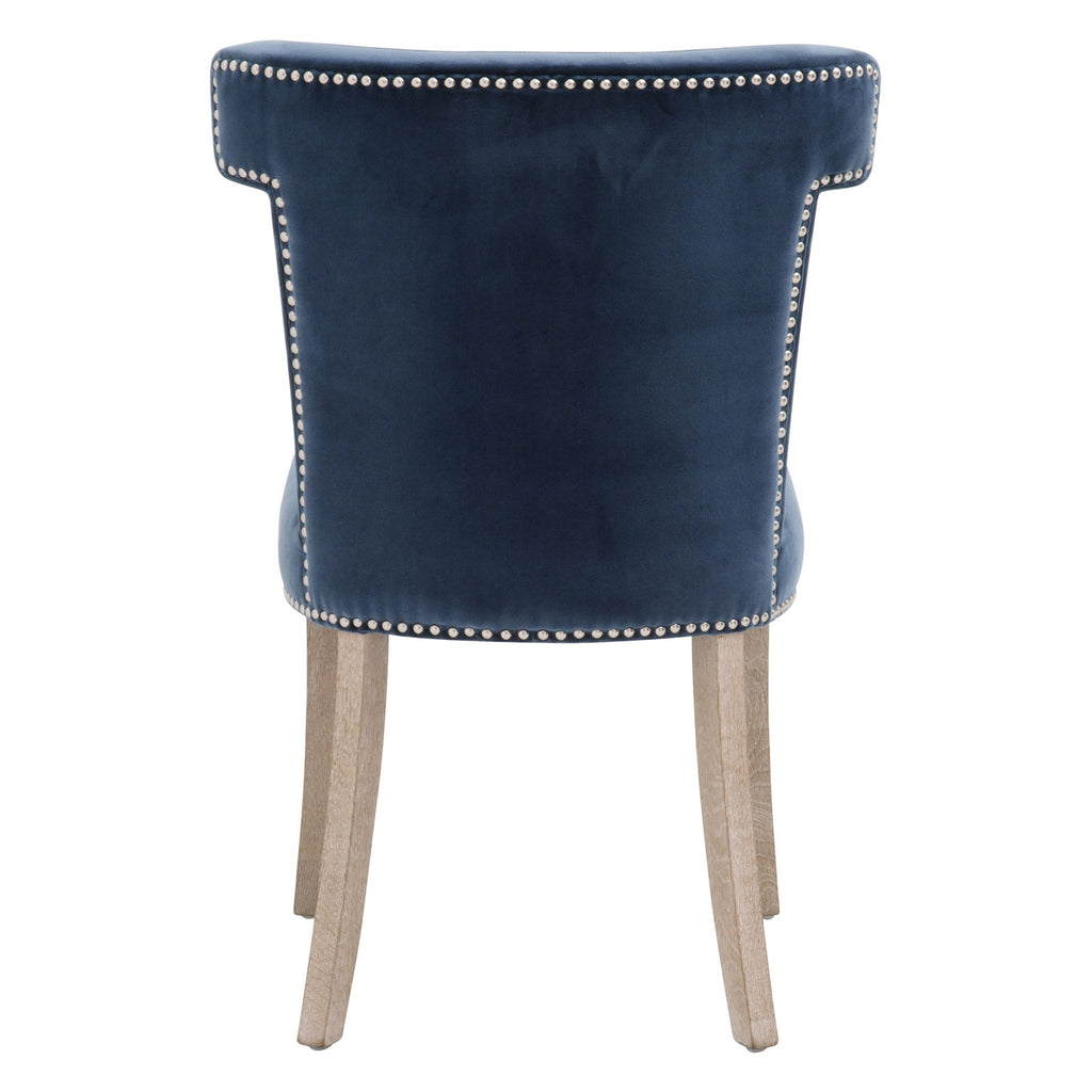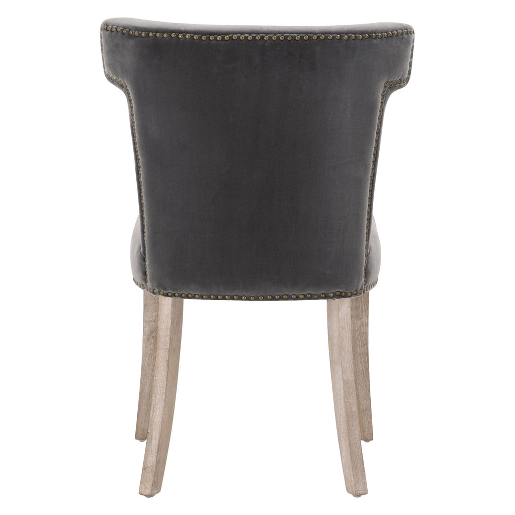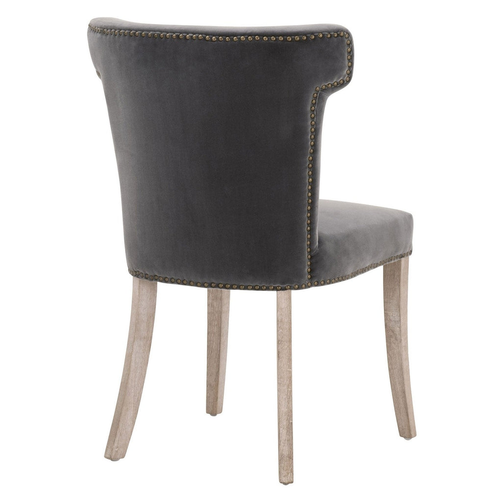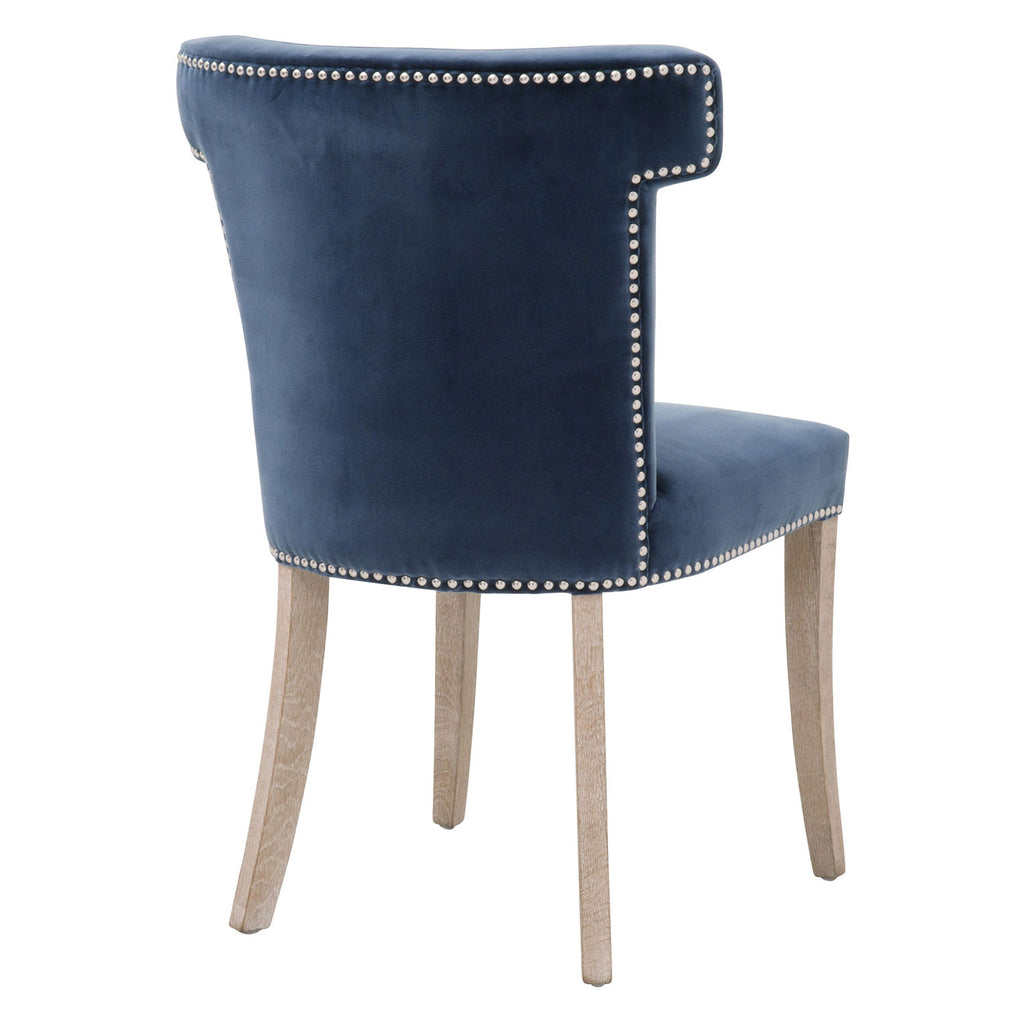 Complete your dining set with the elegant Celina velvet dining chairs. The smooth velvet upholstery is rich in color and will make these chairs the stand-out piece of your dining set. It is constructed with a uniquely sculpted wingback and natural gray oak legs. Gold nail heads line the base of the seat and back of the chair, adding modern appeal to this beautiful dining chair. These side chairs will pair nicely with many transitional style dining tables.