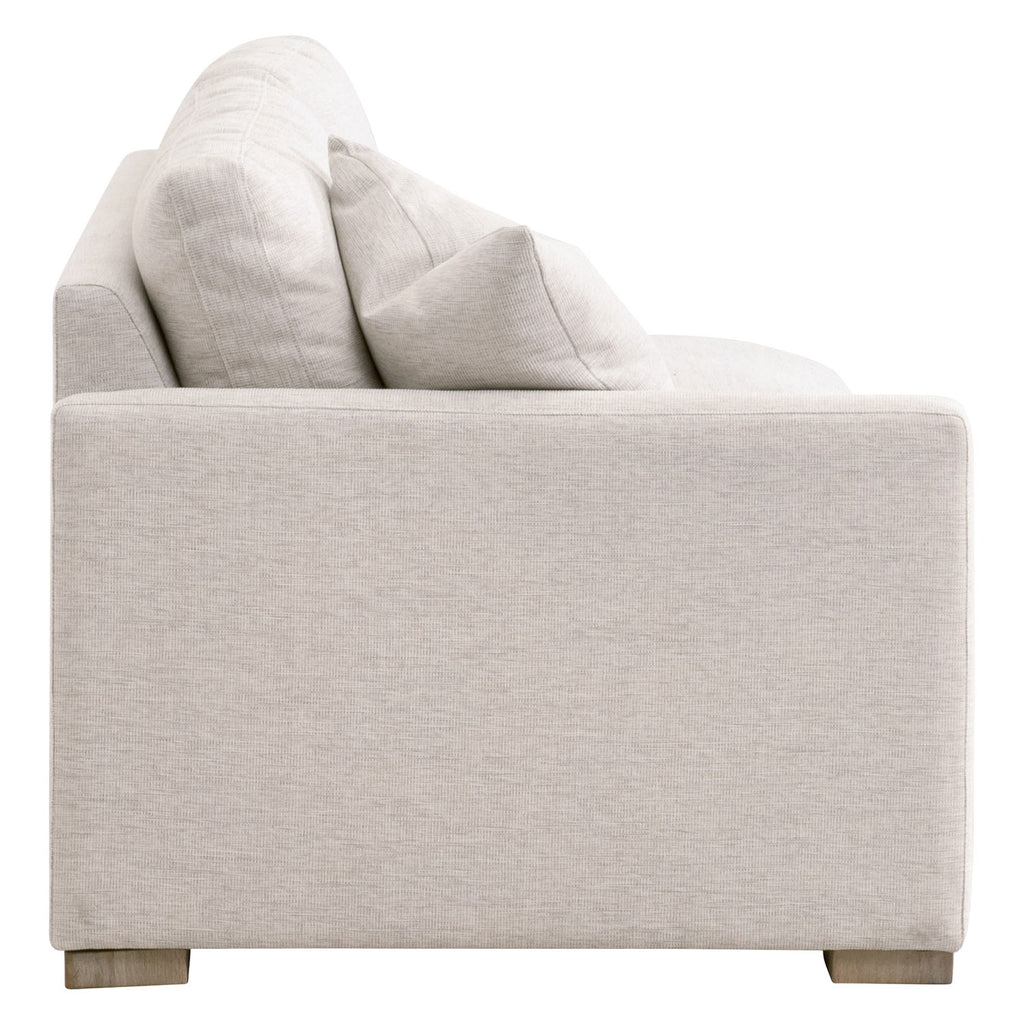 The Essentials for Living Clara modular 2-seater left arm sofa seat is one piece of a beautiful modular sofa. Each piece is sold individually, so you can design a sofa that will best fit your space. It is constructed with an 8-way hand tied suspension and upholstered with stain-resistant treated fabric. The seat and back cushions are reversible, removable, and filled with a down/polyester blend, making them easy to re-fluff and flip to the other side. It also includes one throw pillow filled with 100% down. The gorgeous upholstery is a perfect weave of light gray and white threading with a slightly textured look and feel. The soft and inviting colors of the fabric paired with the natural gray oak feet will compliment many rooms and design styles. Each piece of the modular set contains metal undermounts that snap together to connect each piece to prevent movement and gaps.