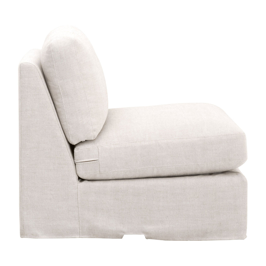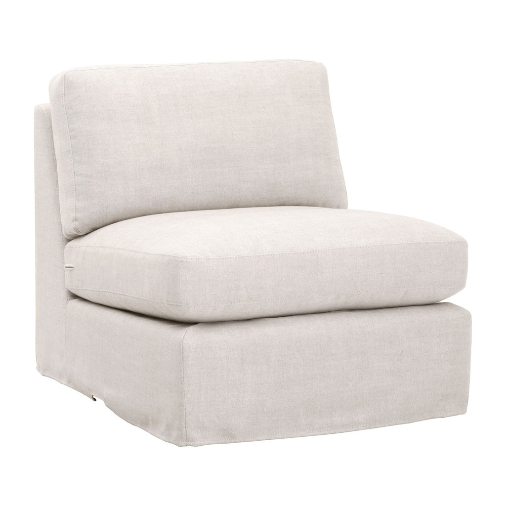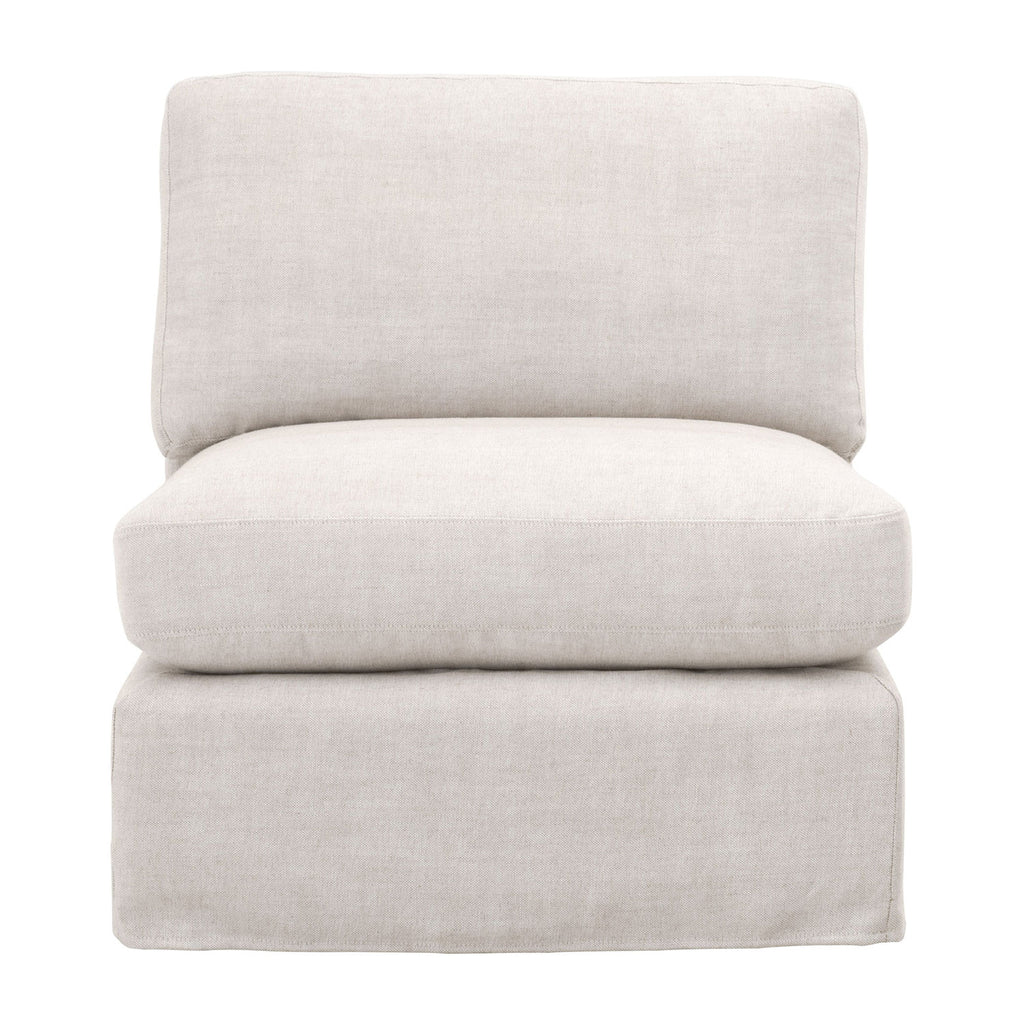 Create the sofa of your dreams with the Essentials for Living Lena modular sofa set. The pieces of this sofa are sold individually so you can design a sofa to fit your space. This piece is the armless chair. It is constructed with an 8-way hand tied suspension and cushions filled with a poly and down blend for ultimate comfort. It features a removable slipcover for easy cleaning. Each piece of this modular sofa contains an undermount metal snap to link each piece to prevent sliding, movement, and gaps between pieces. This sofa will fit well in many settings, as it has a bisque-colored fabric that is neutral and appealing with many other color combinations and decor styles. Stitch & Hand Collection's fabric finishes made with natural materials feature unavoidable dye lot variation.