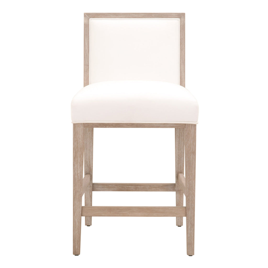 The Essentials for Living Martin counter stools features a solid acacia frame upholstered seat and back with LiveSmart Peyton Pearl or Slate performance fabric. Sold as set of two.